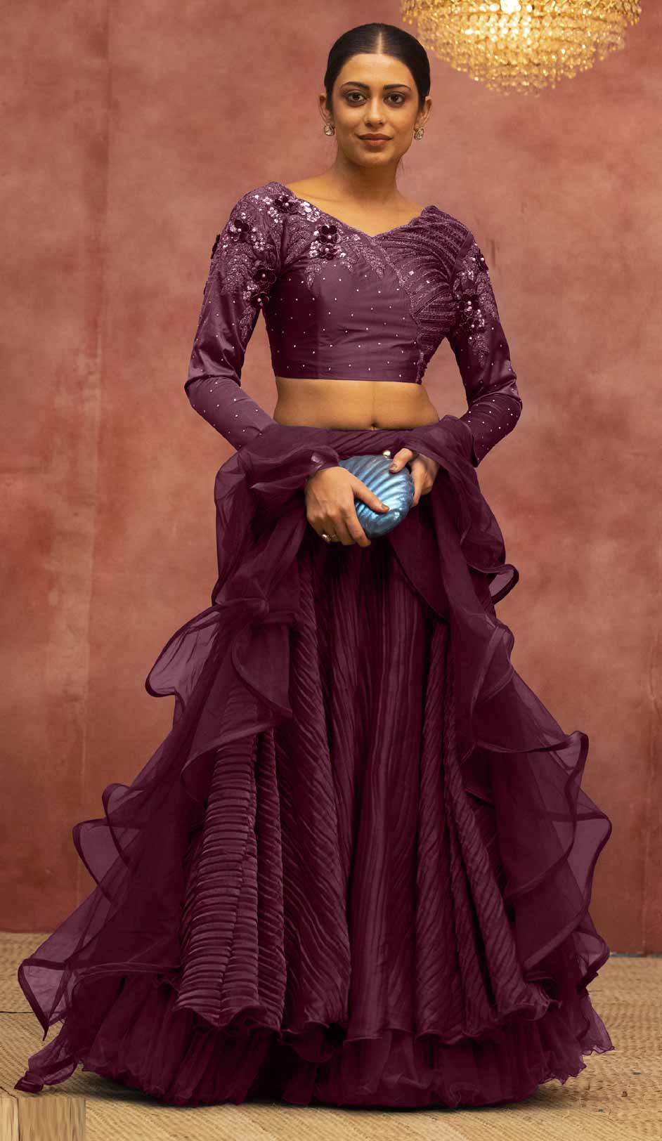 Pink and Majenta color Lehenga in Net fabric with Sequence work