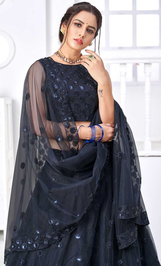 Blue color Lehenga in Net fabric with Embroidered, Sequence, Thread work