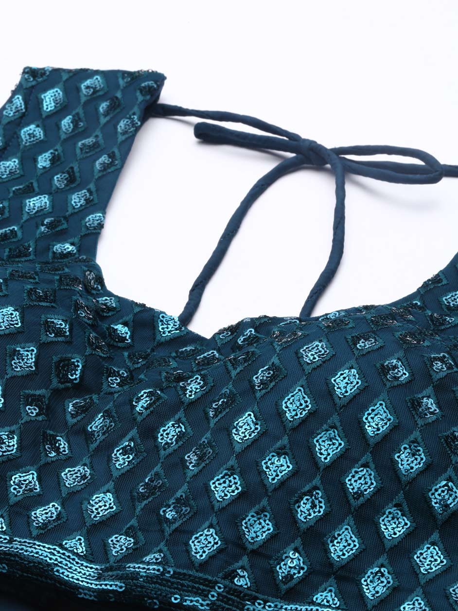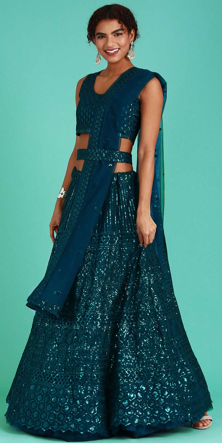 Blue color Lehenga in Net fabric with Sequence, Thread work