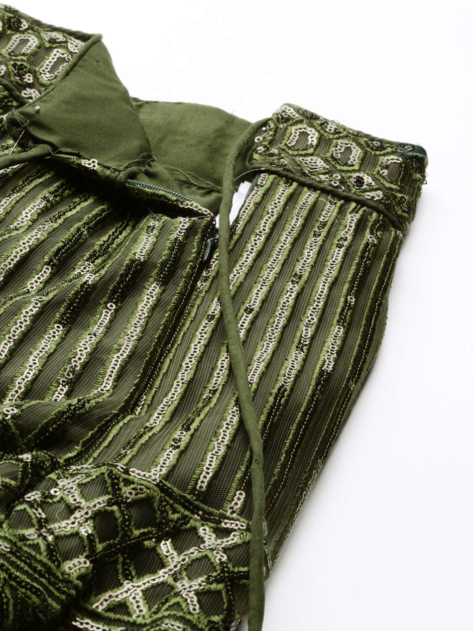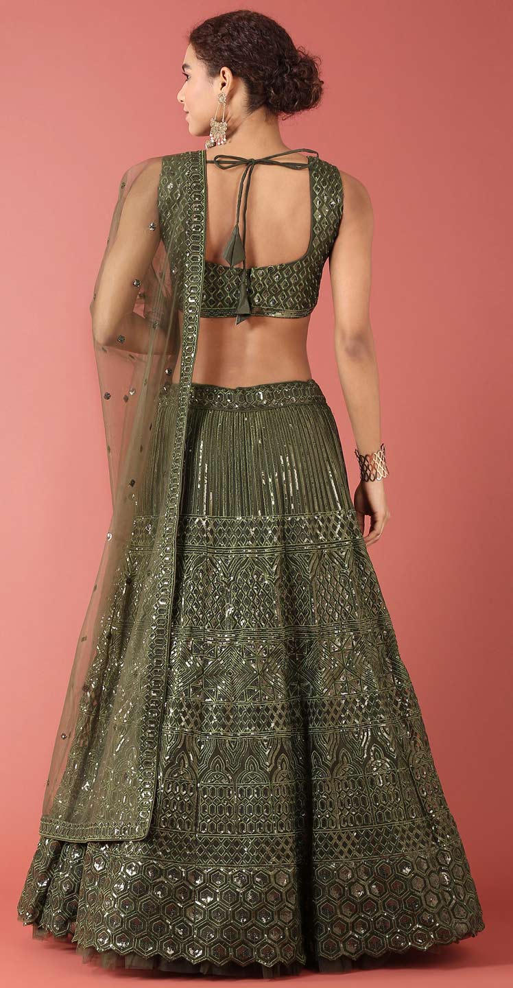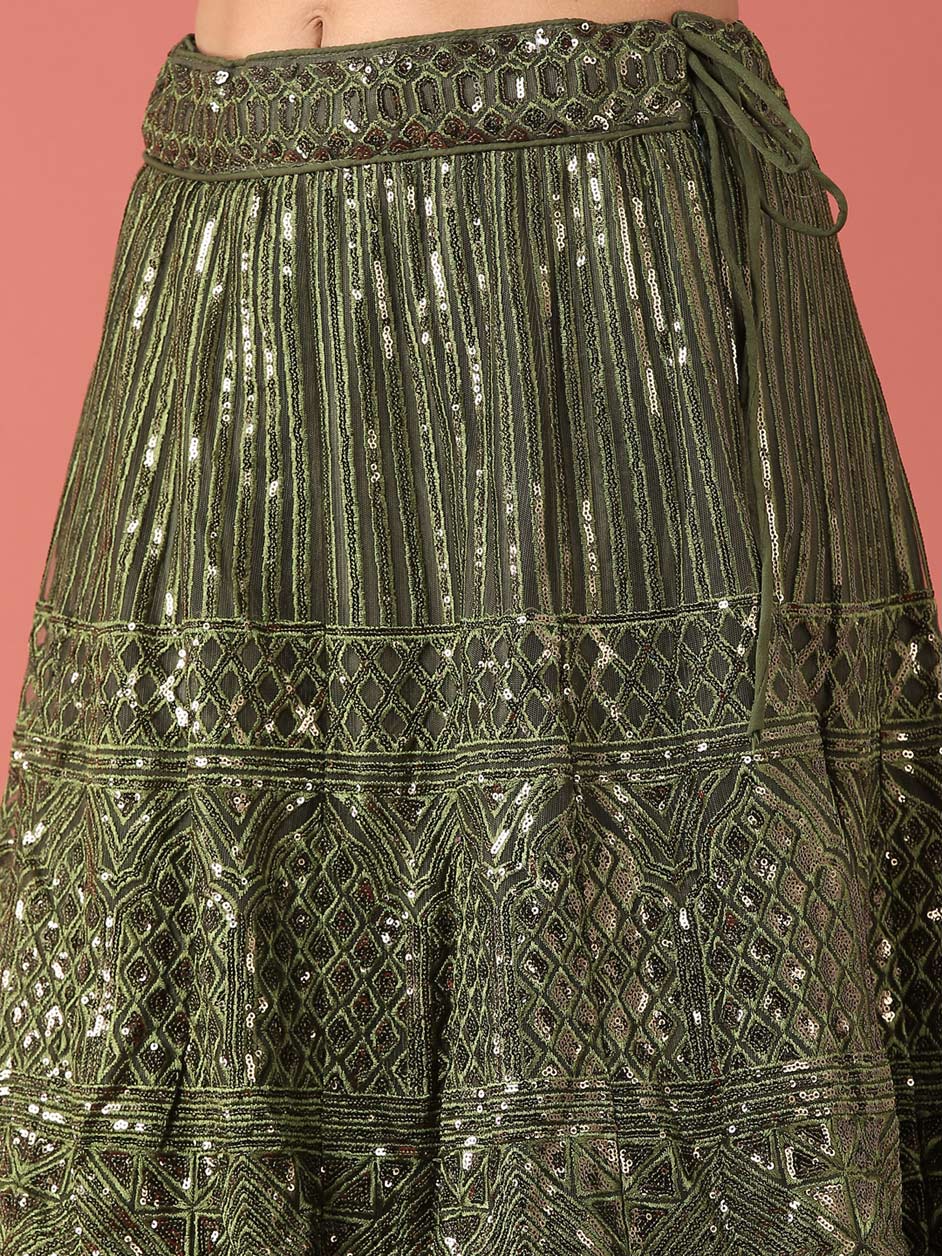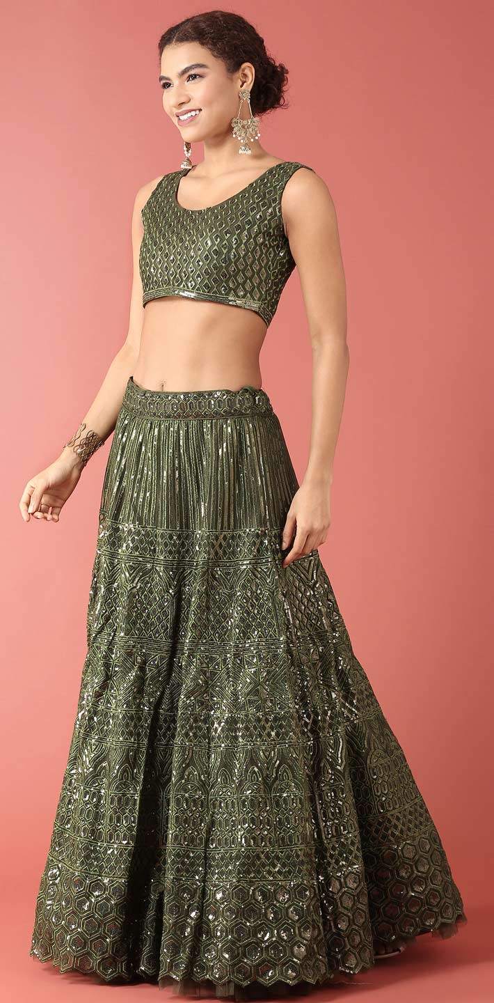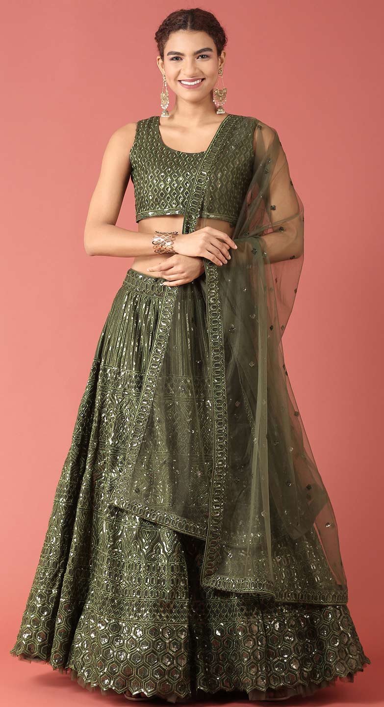 Green color Lehenga in Net fabric with Sequence, Thread work