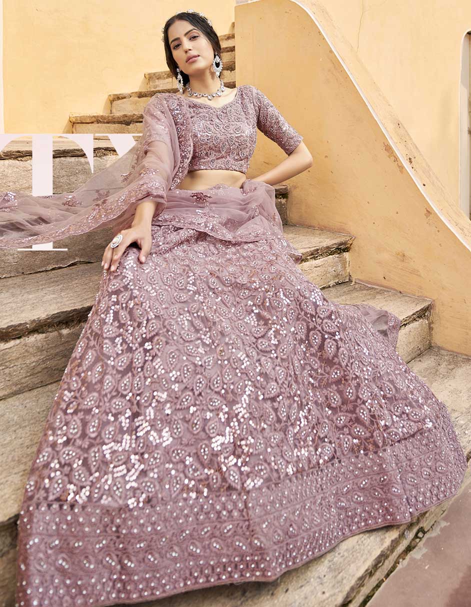 Pink and Majenta color Lehenga in Net fabric with Embroidered, Thread, Zircon work