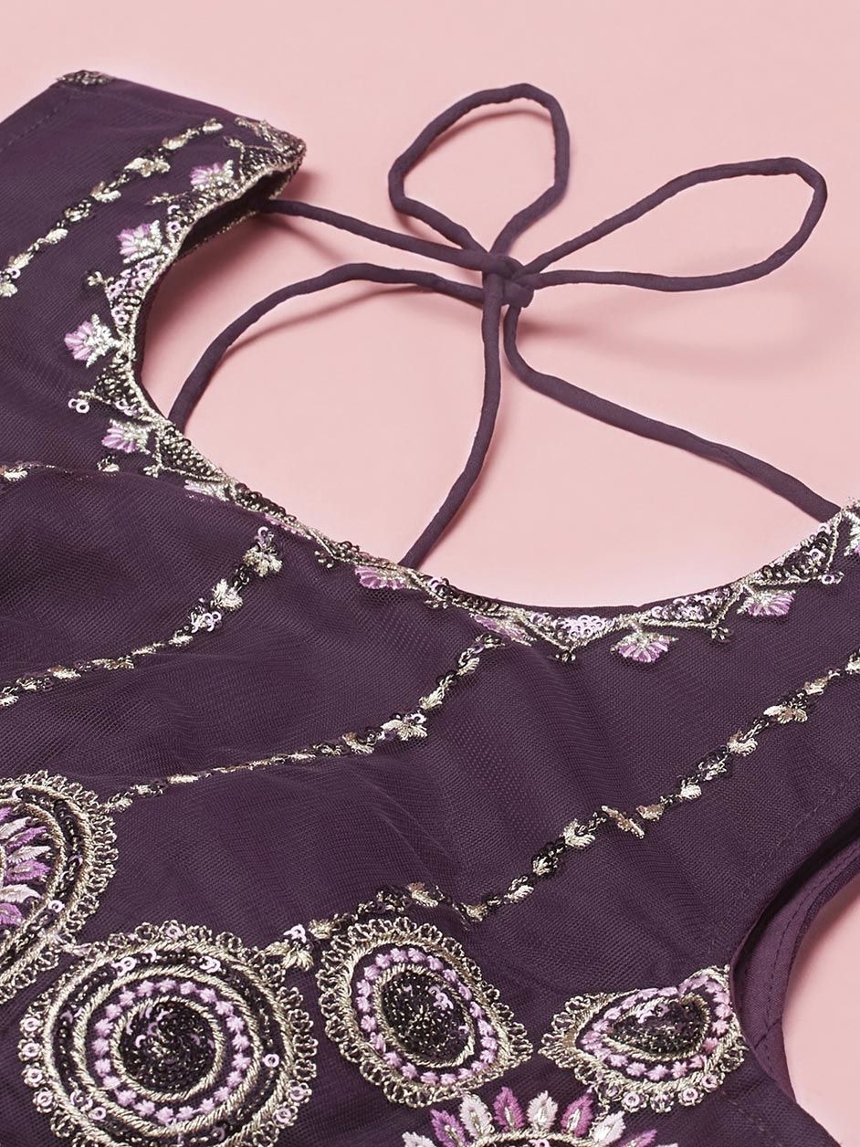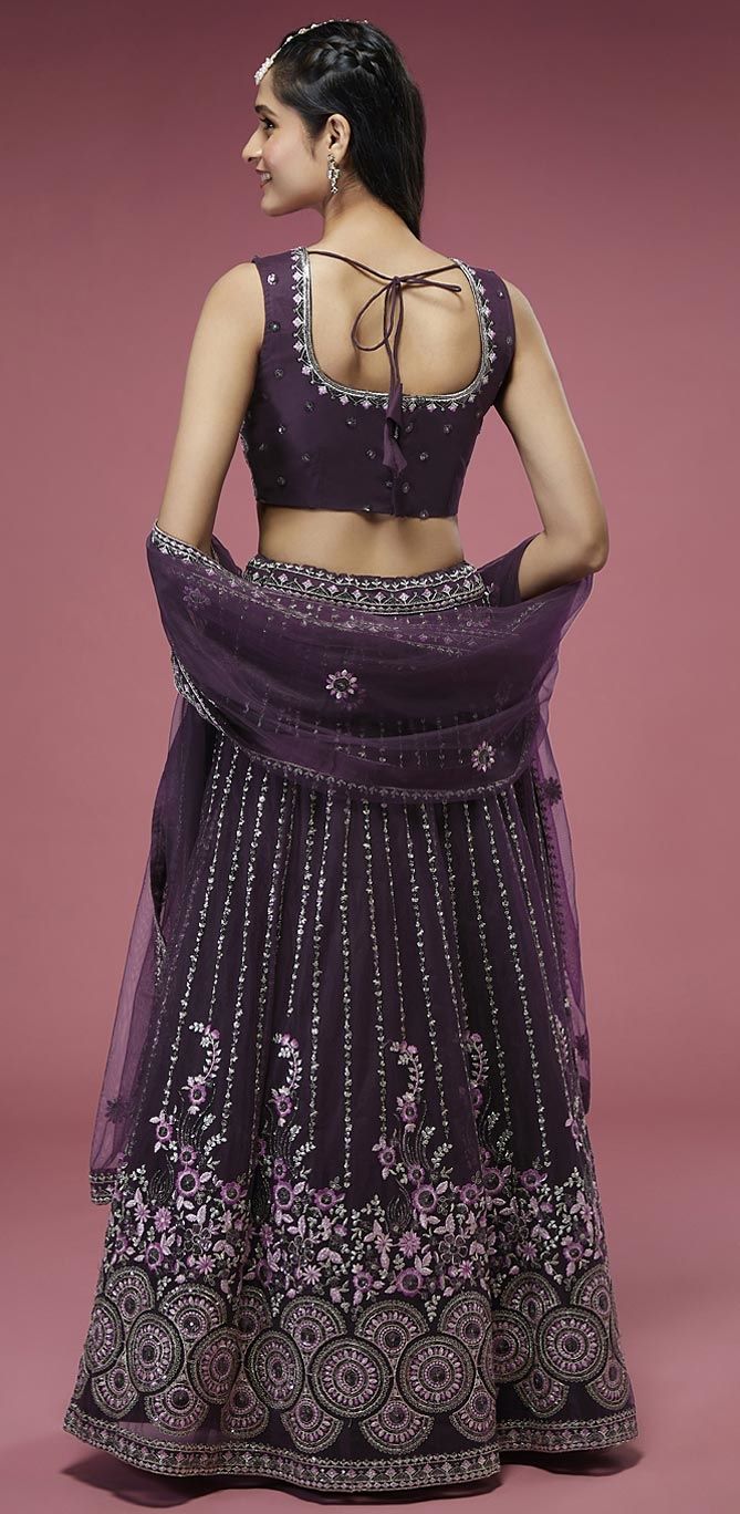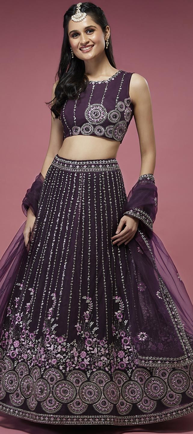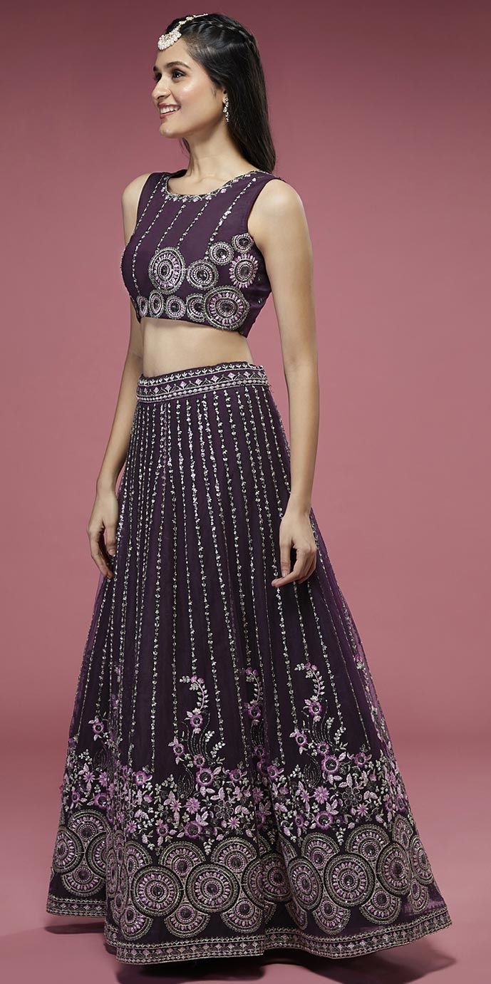 Red and Maroon color Lehenga in Net fabric with Embroidered, Sequence, Thread work