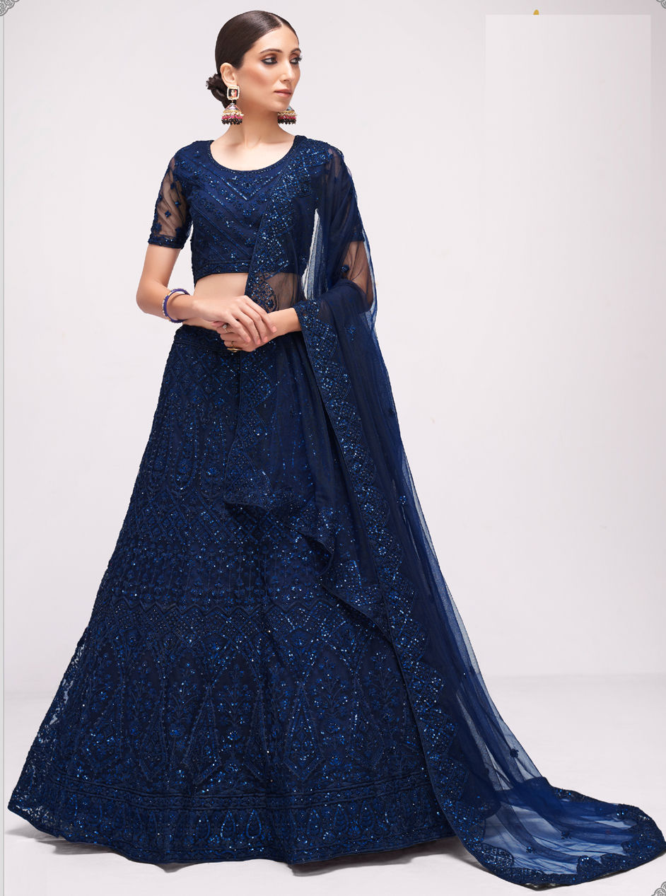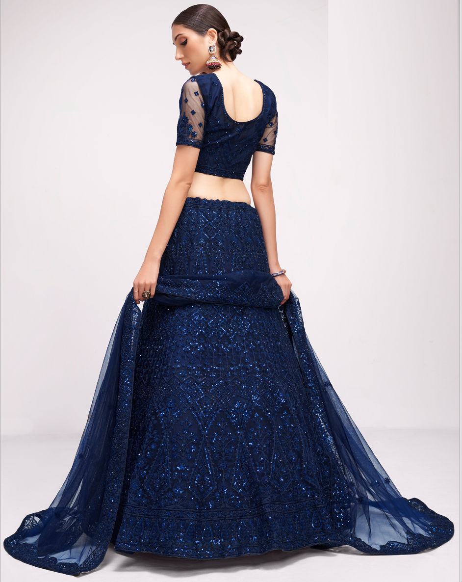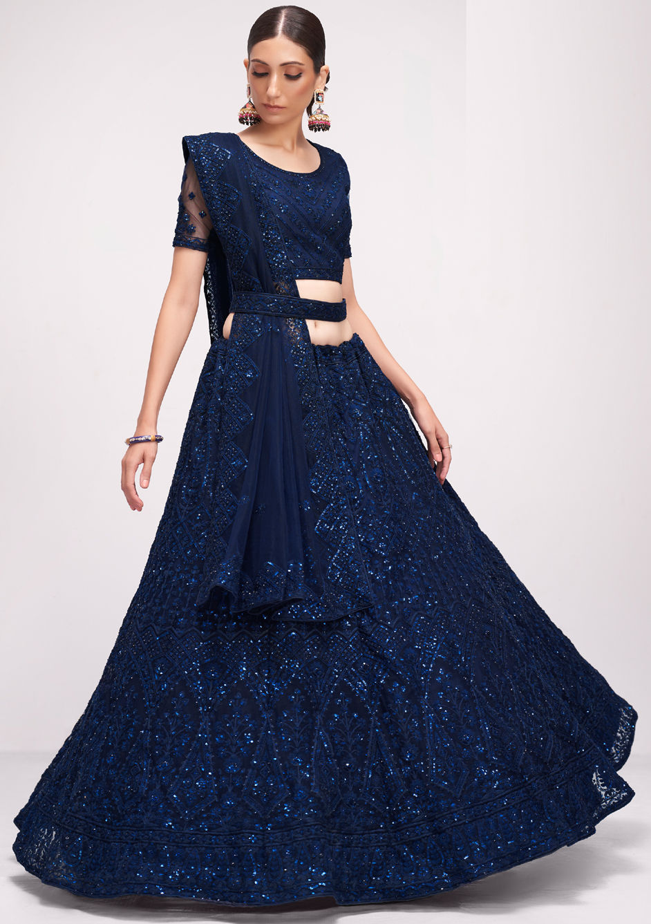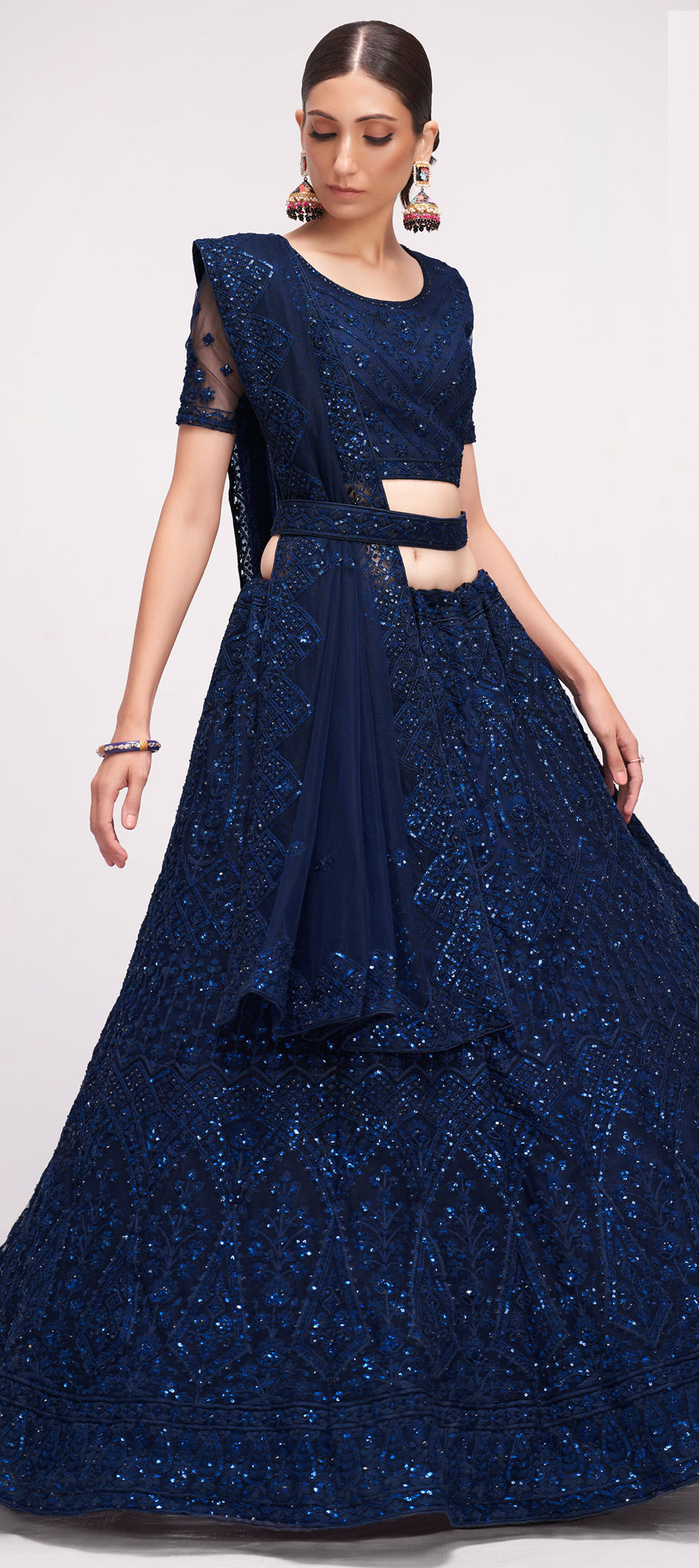 Blue color Lehenga in Net fabric with Embroidered, Sequence, Stone, Thread work