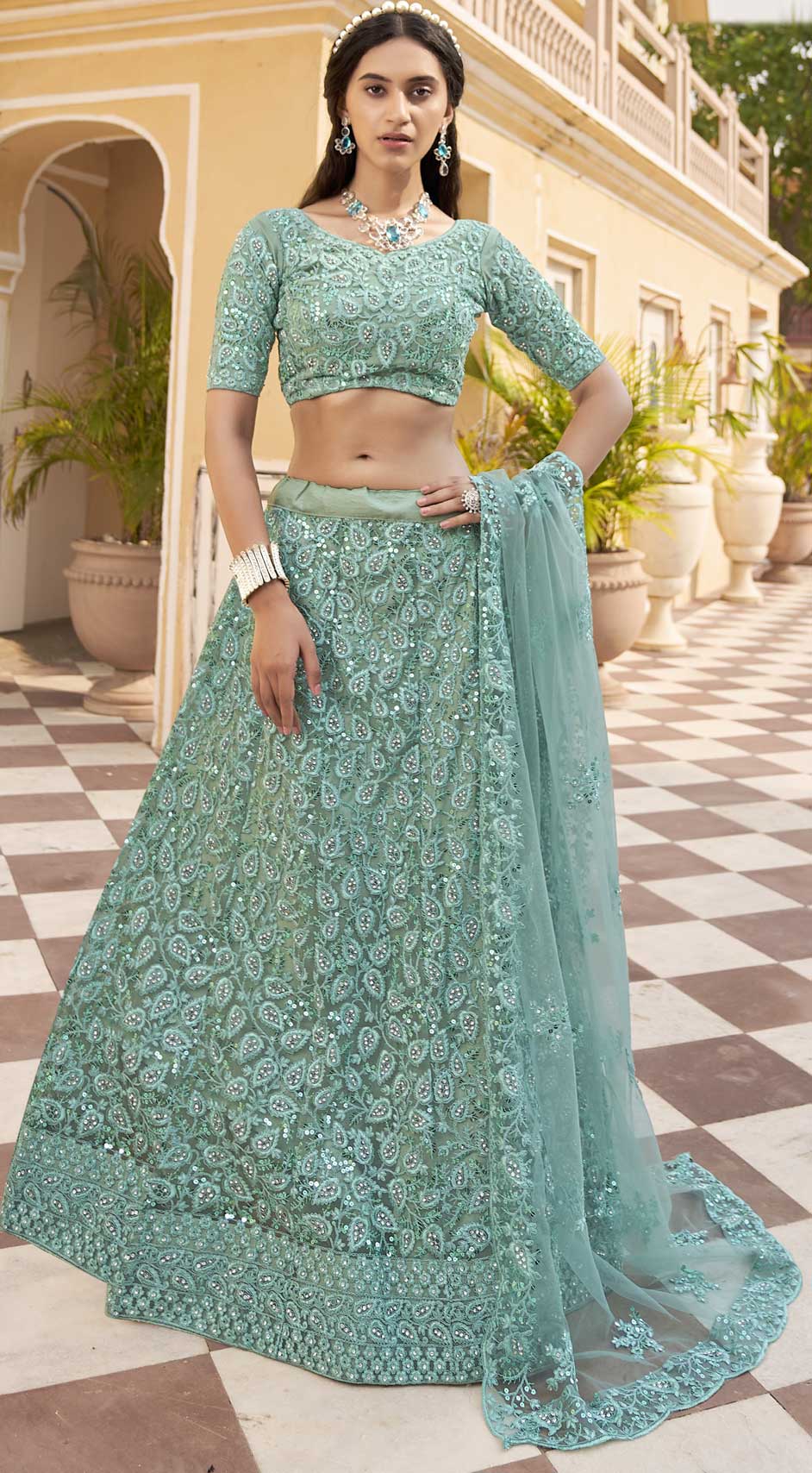 Blue color Lehenga in Net fabric with Embroidered, Thread, Zircon work