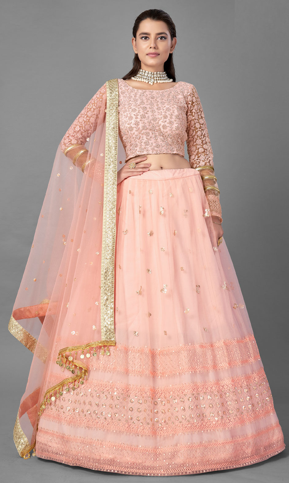 Pink and Majenta color Lehenga in Net fabric with Sequence, Thread work