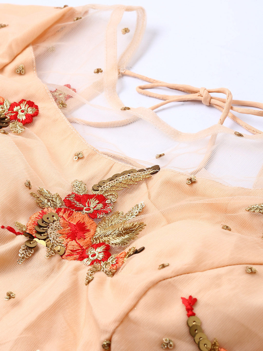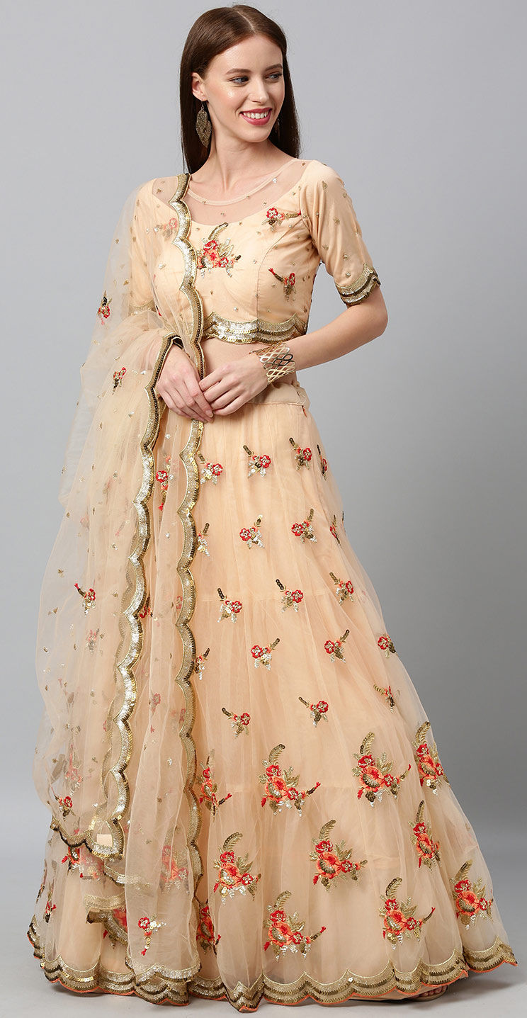 Pink and Majenta color Lehenga in Net fabric with Sequence, Zari work