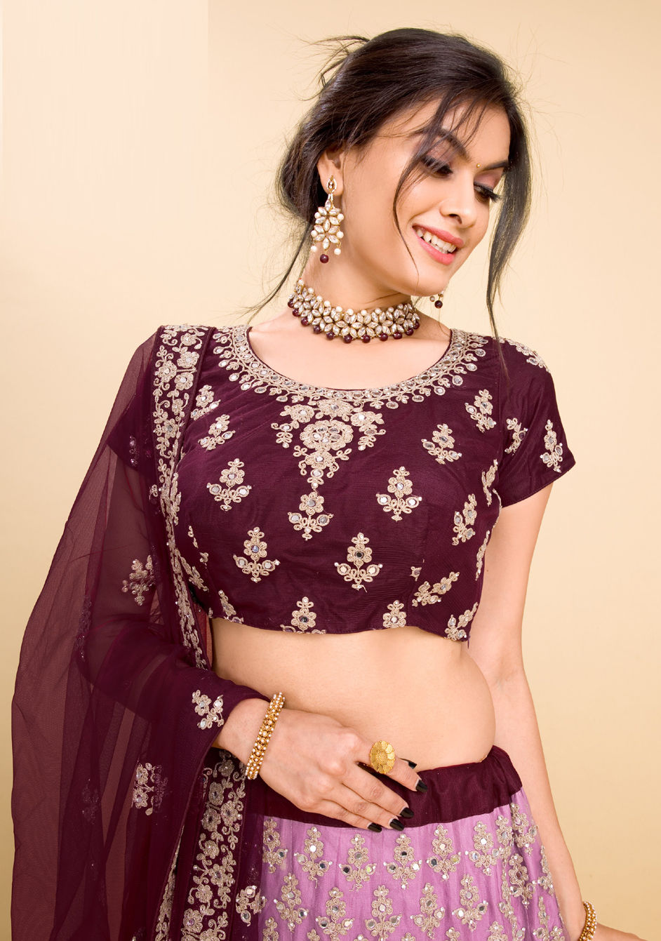in Purple and Violet with Stone work