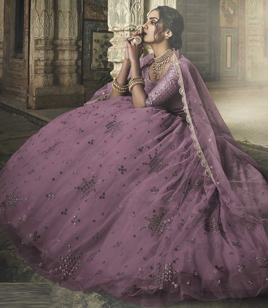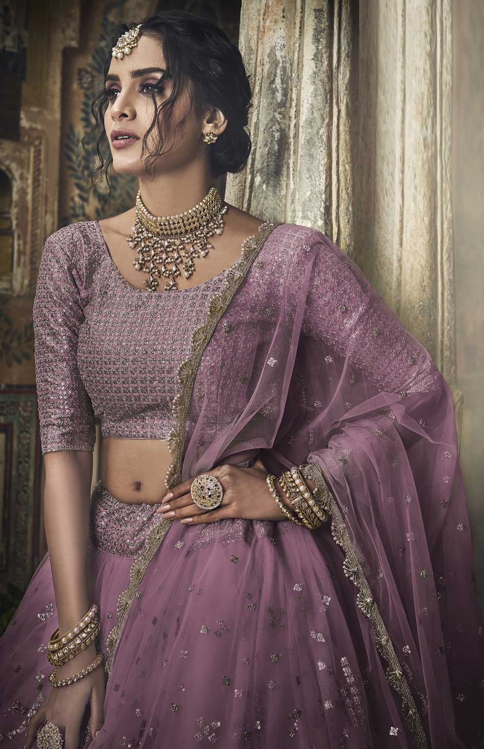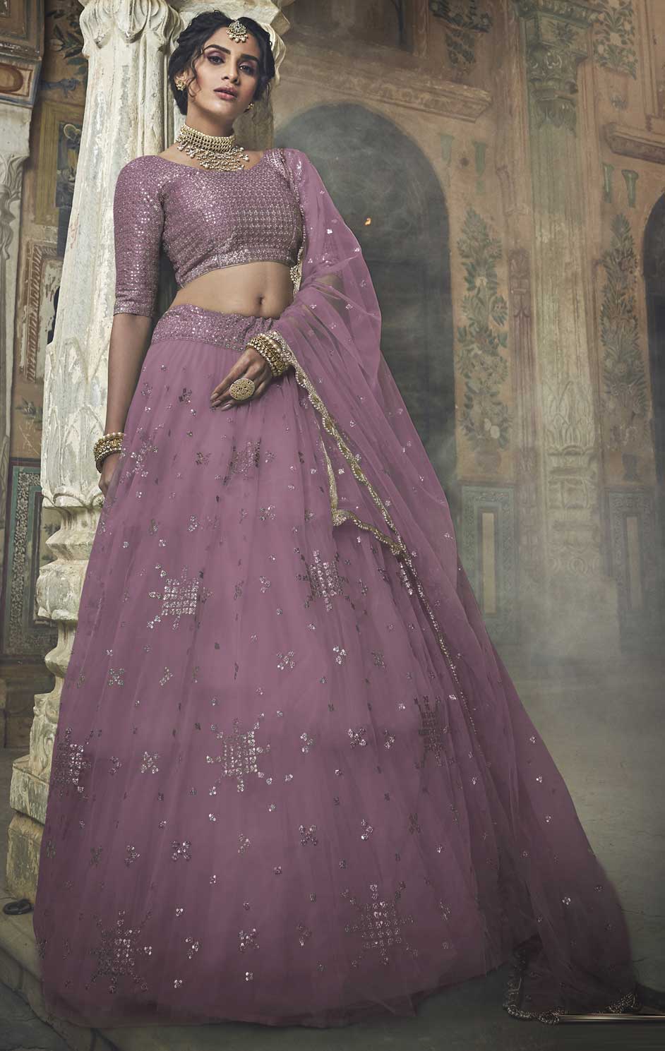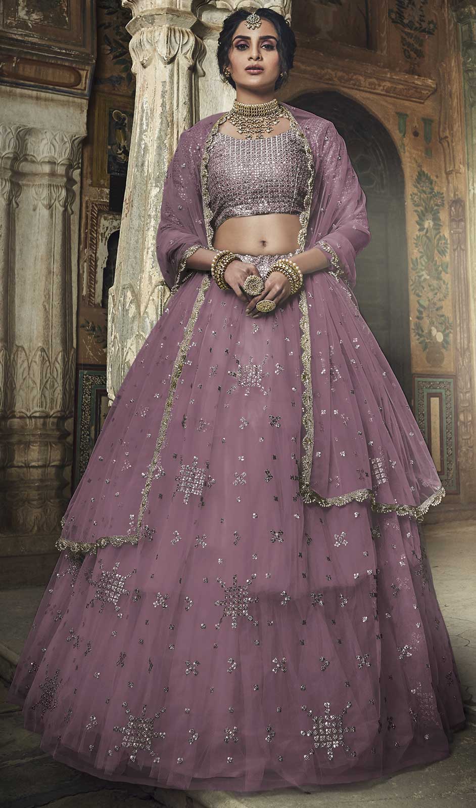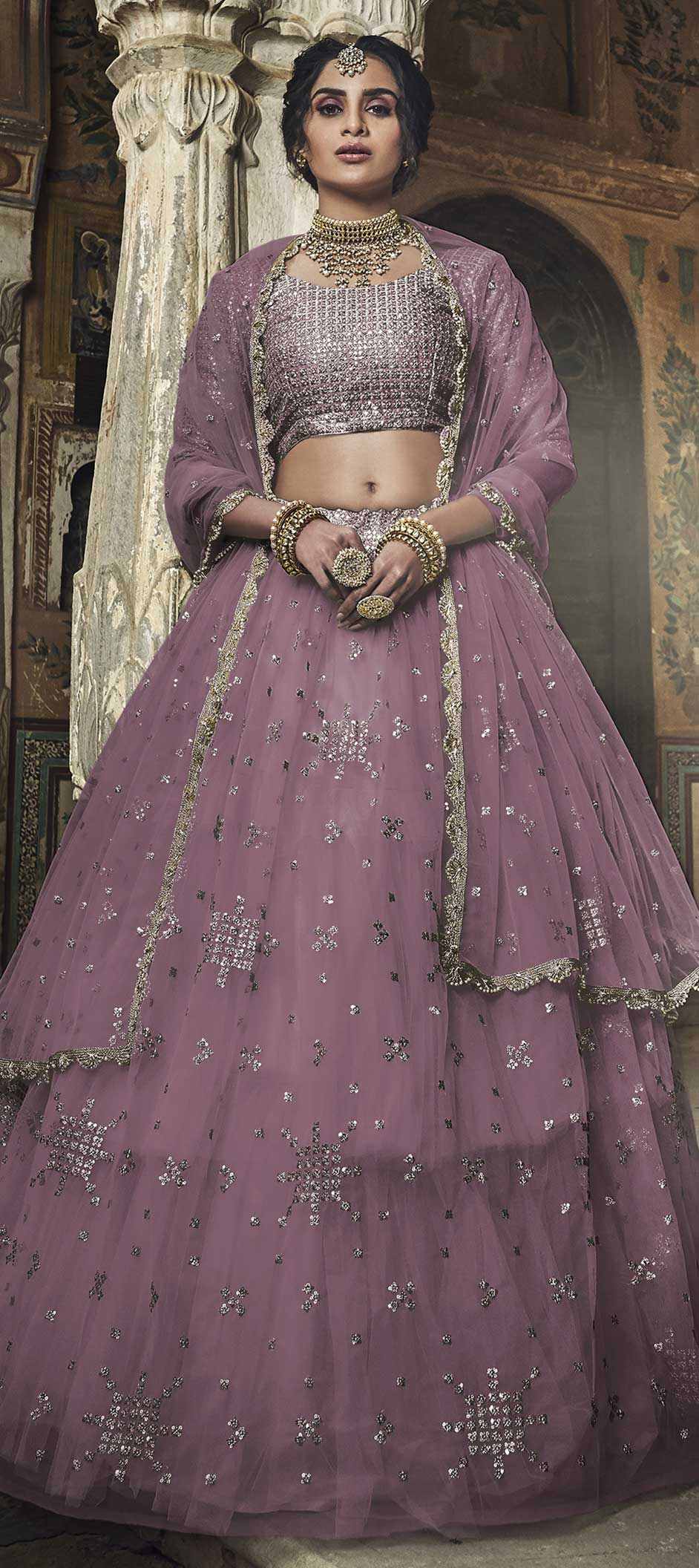 Purple and Violet color Lehenga in Net fabric with Sequence, Thread, Zari work