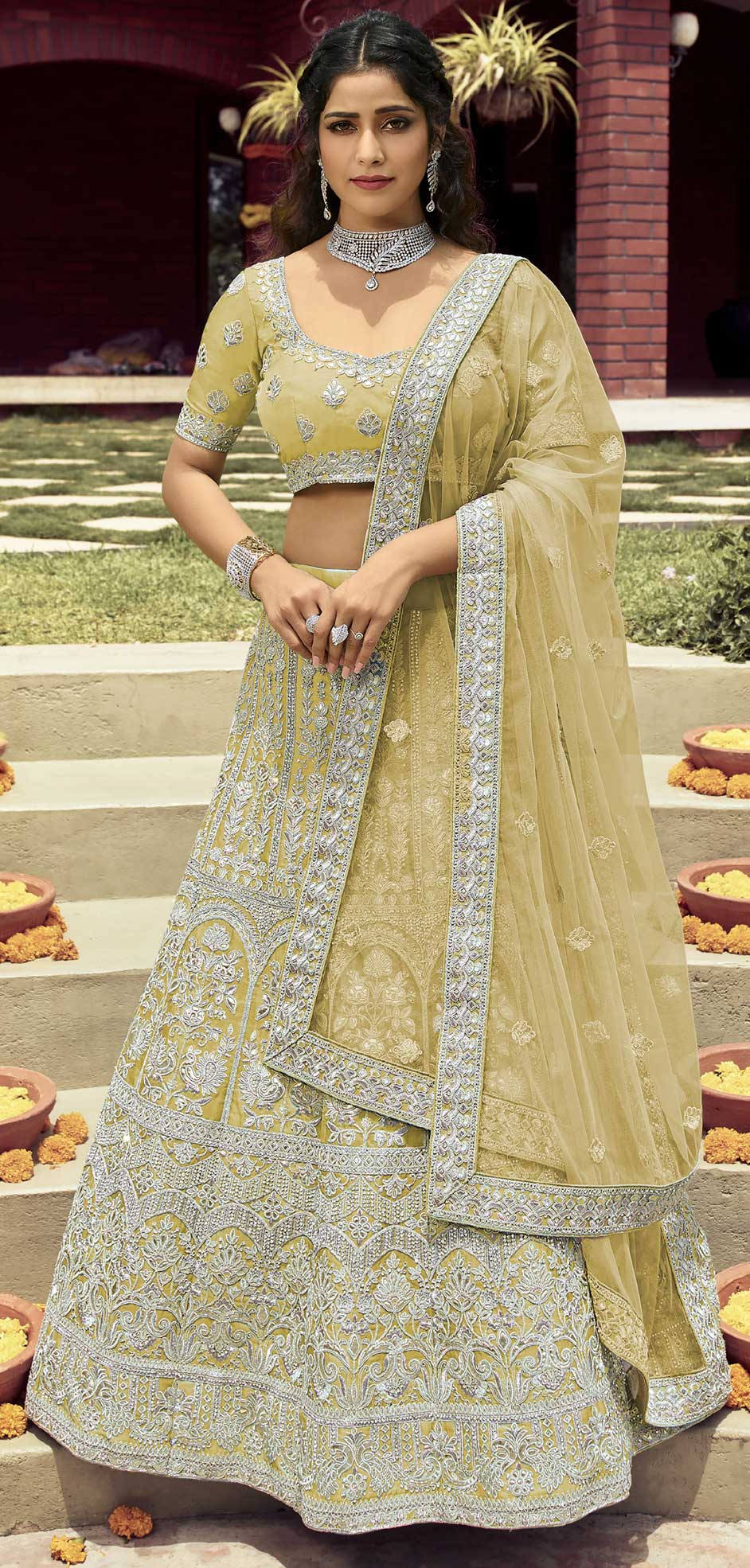 Yellow color Lehenga in Organza Silk fabric with Gota Patti, Zircon work