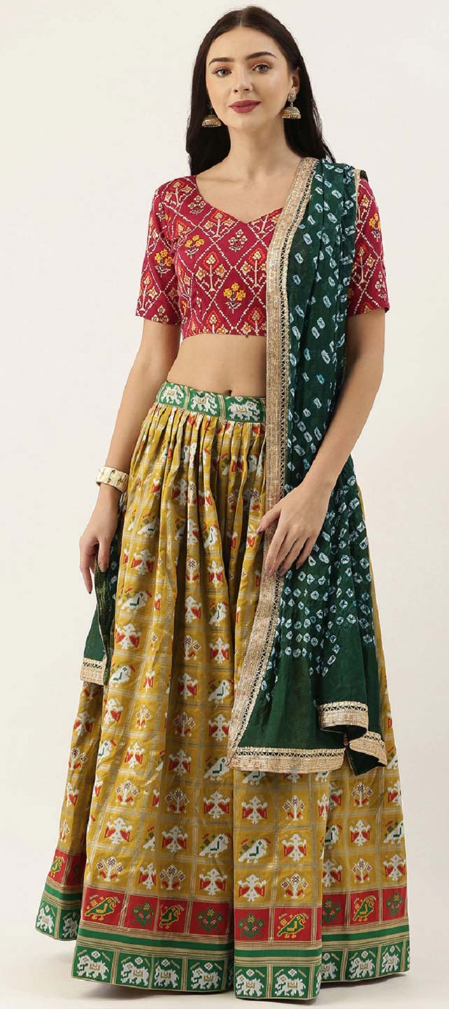 Gold color Lehenga in Patola Silk fabric with Printed work