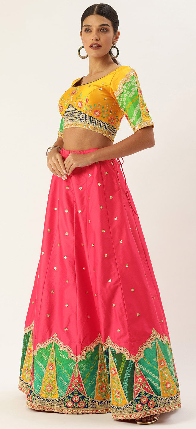Pink and Majenta color Lehenga in Satin Silk fabric with Embroidered, Patch, Sequence, Zari work