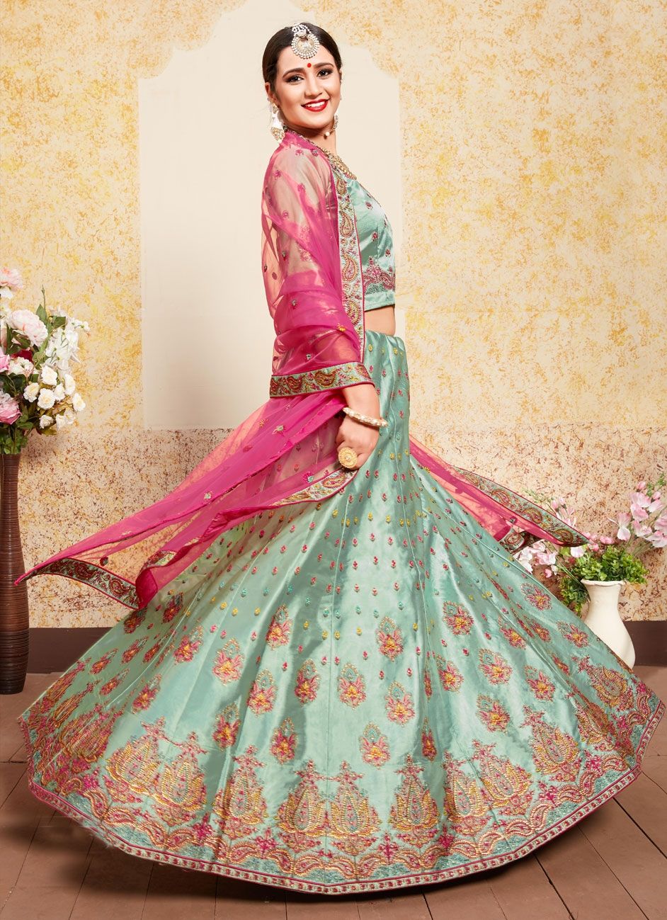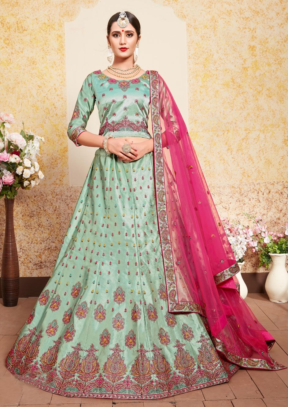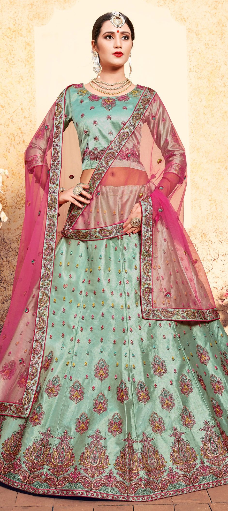 Green color Lehenga in Satin Silk fabric with Embroidered, Resham, Thread work