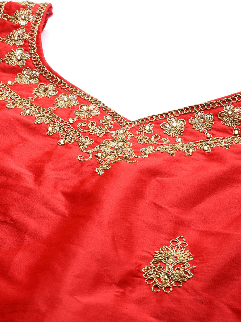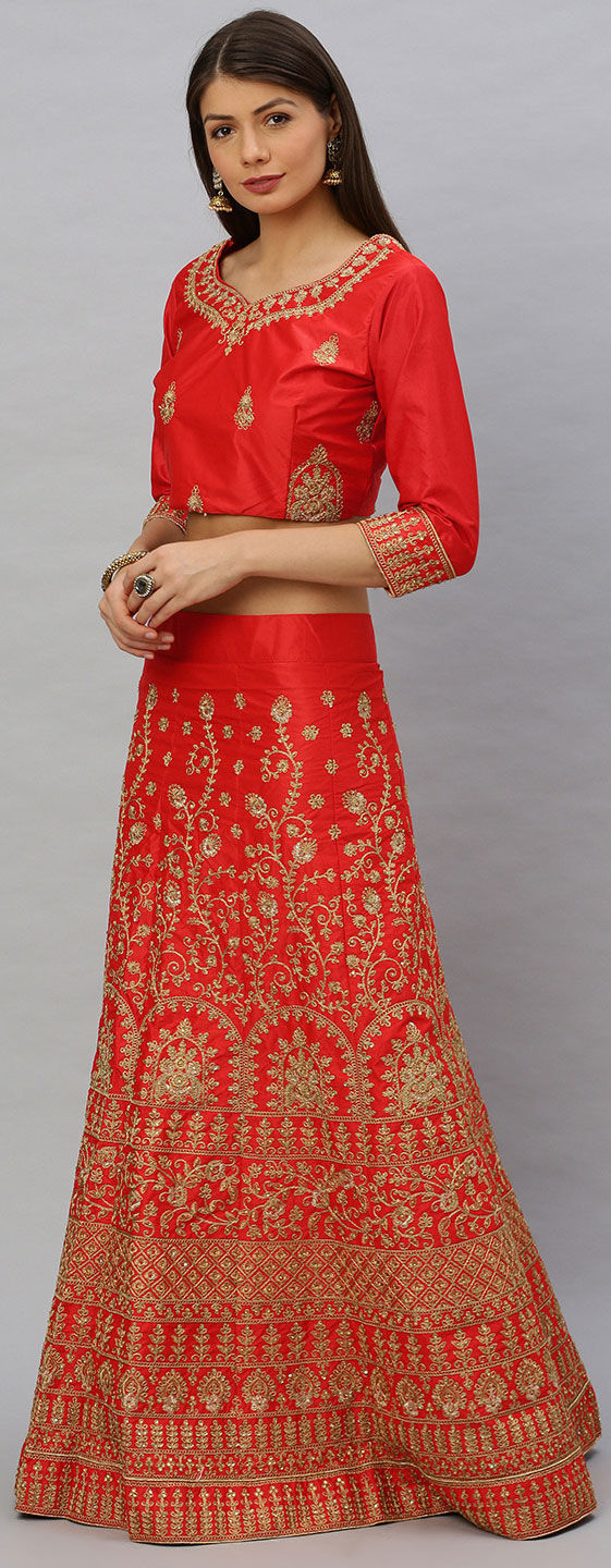 Red and Maroon color Lehenga in Satin Silk fabric with Embroidered, Stone, Thread, Zari work