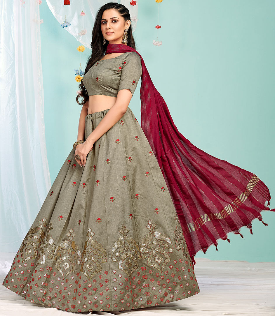 Black and Grey color Lehenga in Satin Silk fabric with Gota Patti, Thread, Zari work