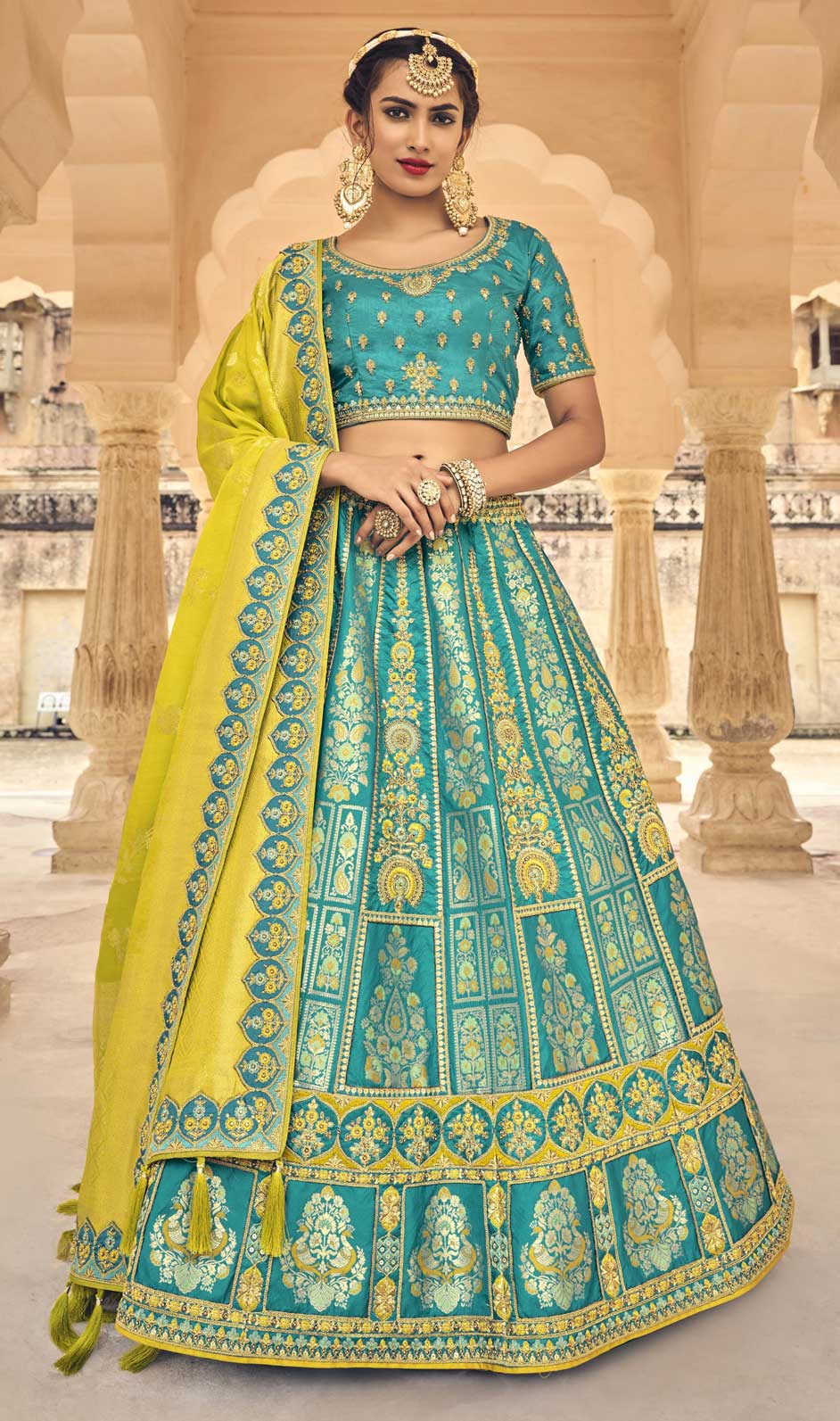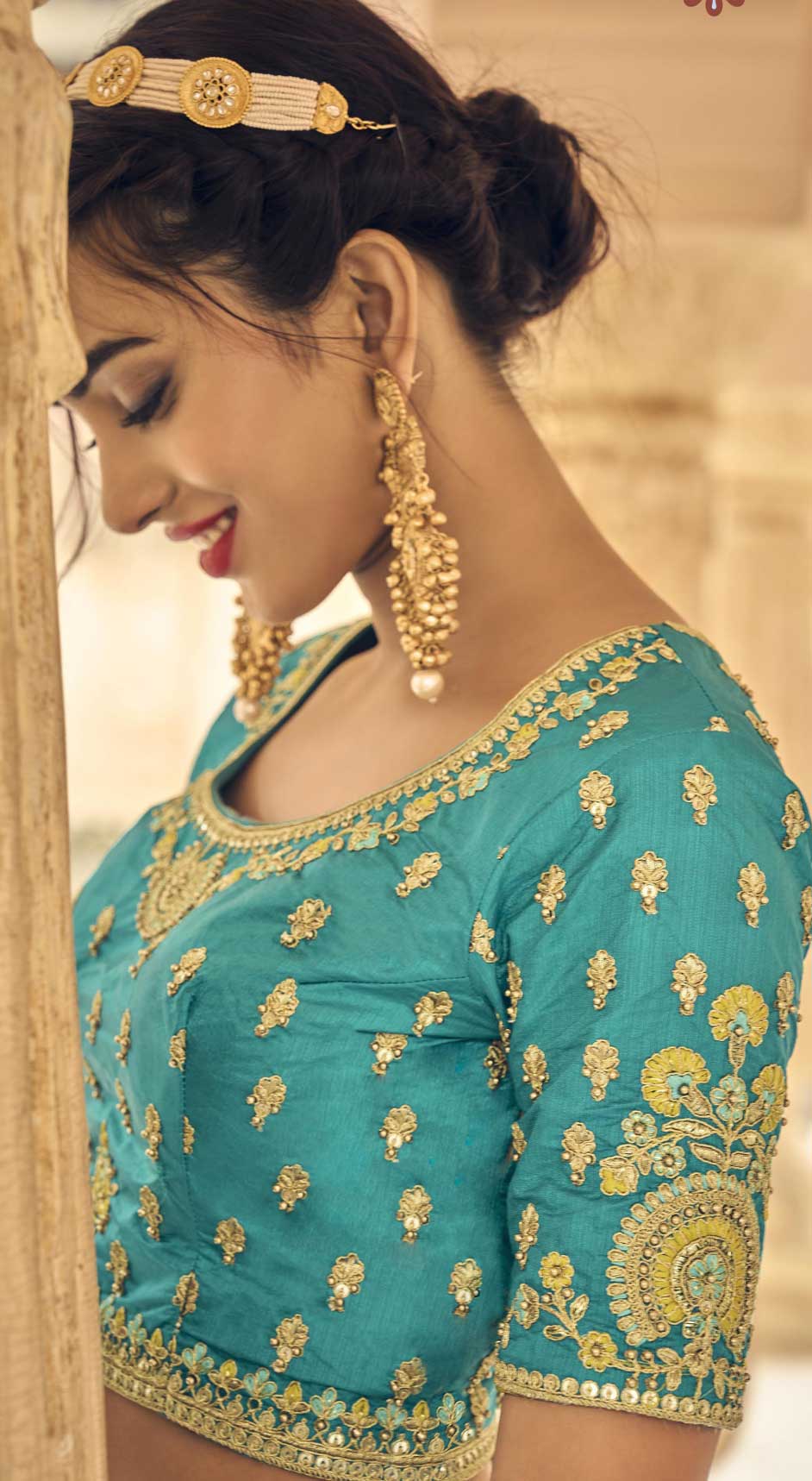 Blue color Lehenga in Silk fabric with Gota Patti, Weaving, Zari work
