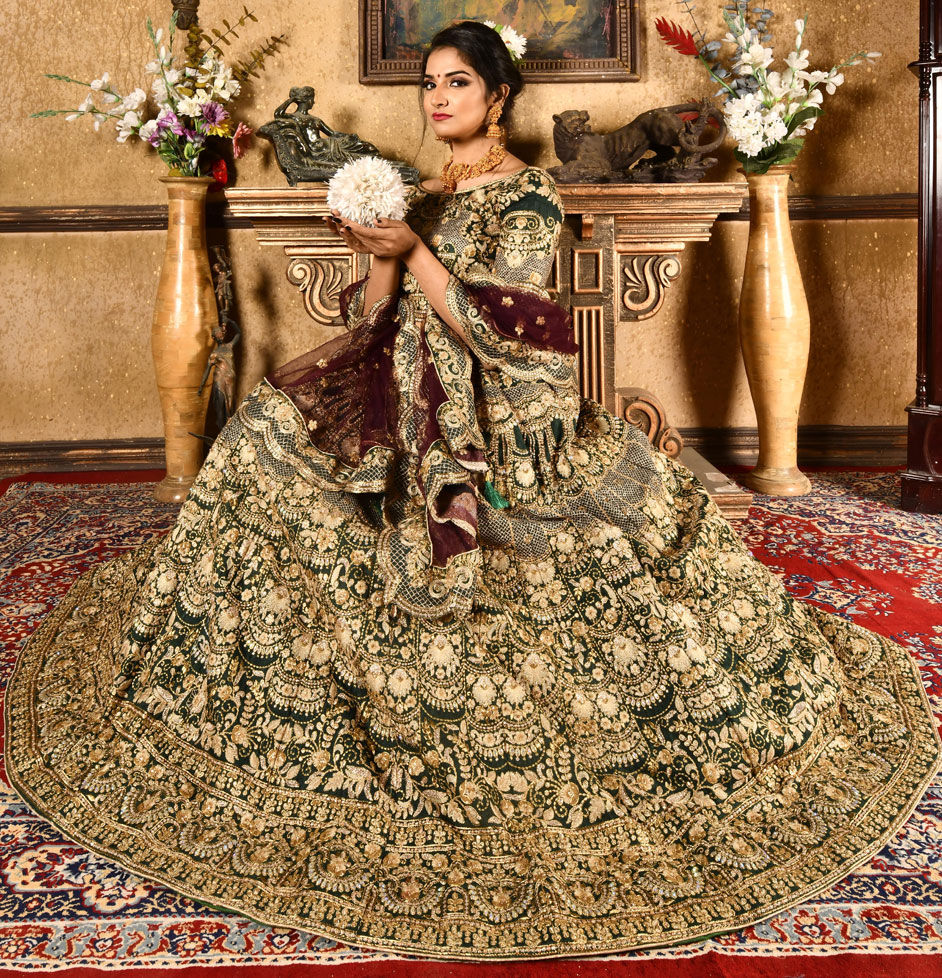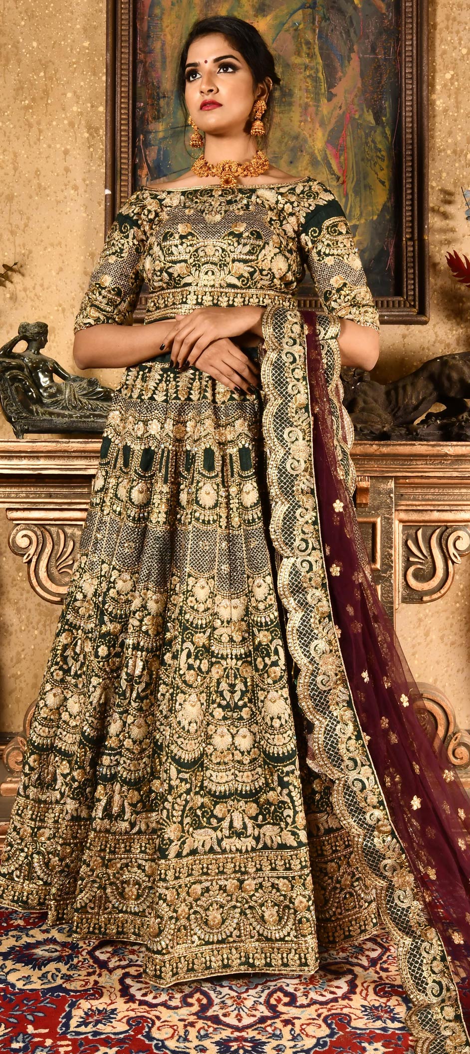 Green color Lehenga in Silk fabric with Embroidered, Moti, Resham, Stone, Thread, Zari work