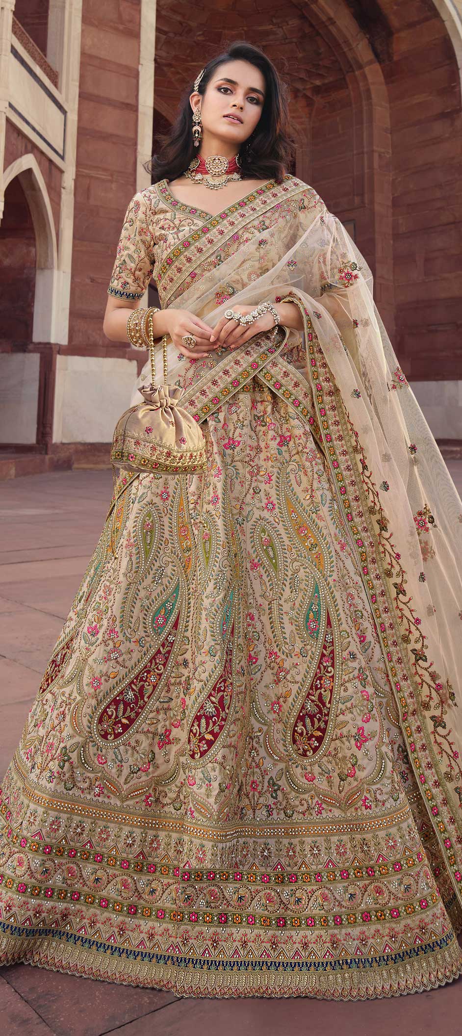 Multicolor color Lehenga in Silk fabric with Embroidered, Patch, Resham, Sequence, Stone work