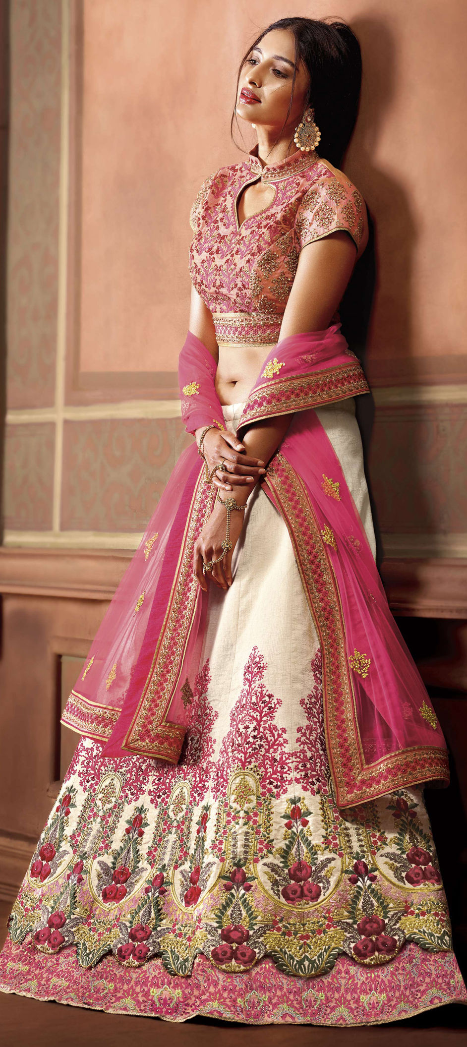 White and Off White color Lehenga in Art Silk fabric with Embroidered, Lace, Resham, Thread, Zari work