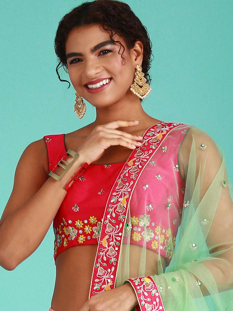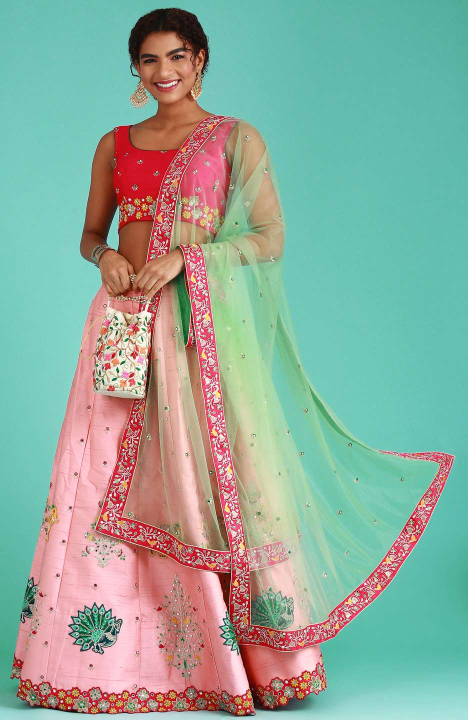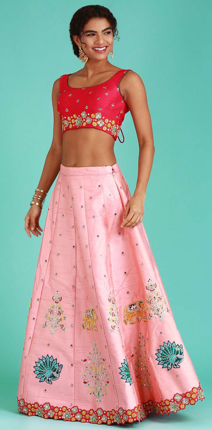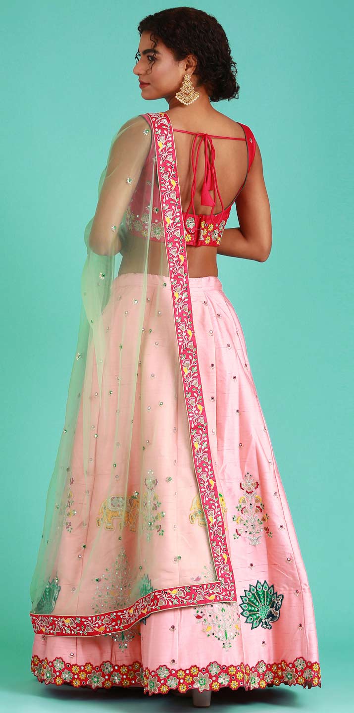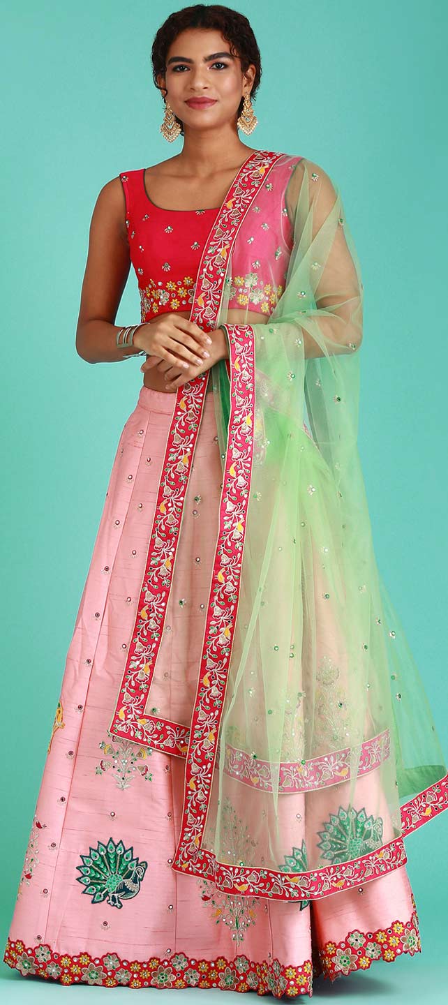 Pink and Majenta color Lehenga in Silk fabric with Mirror, Sequence, Thread work