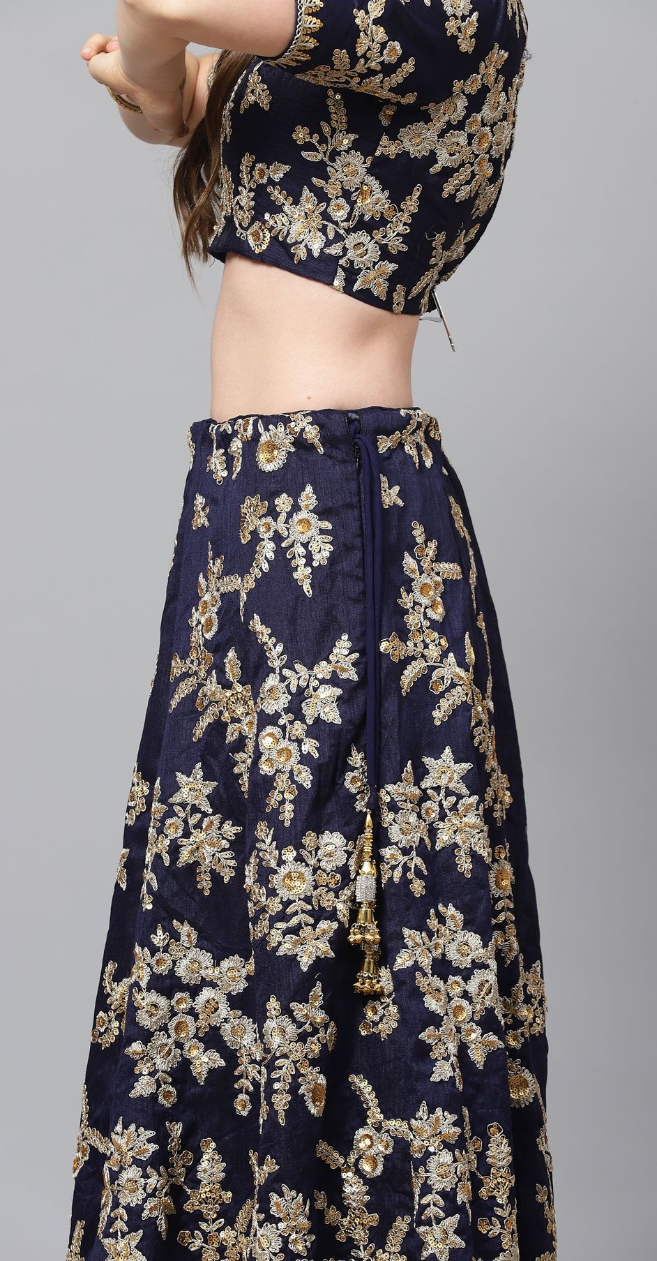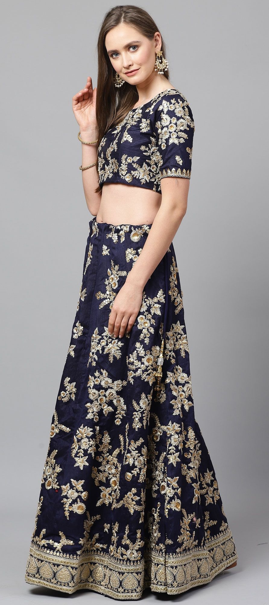 Blue color Lehenga in Bangalore Silk fabric with Embroidered, Sequence, Thread work