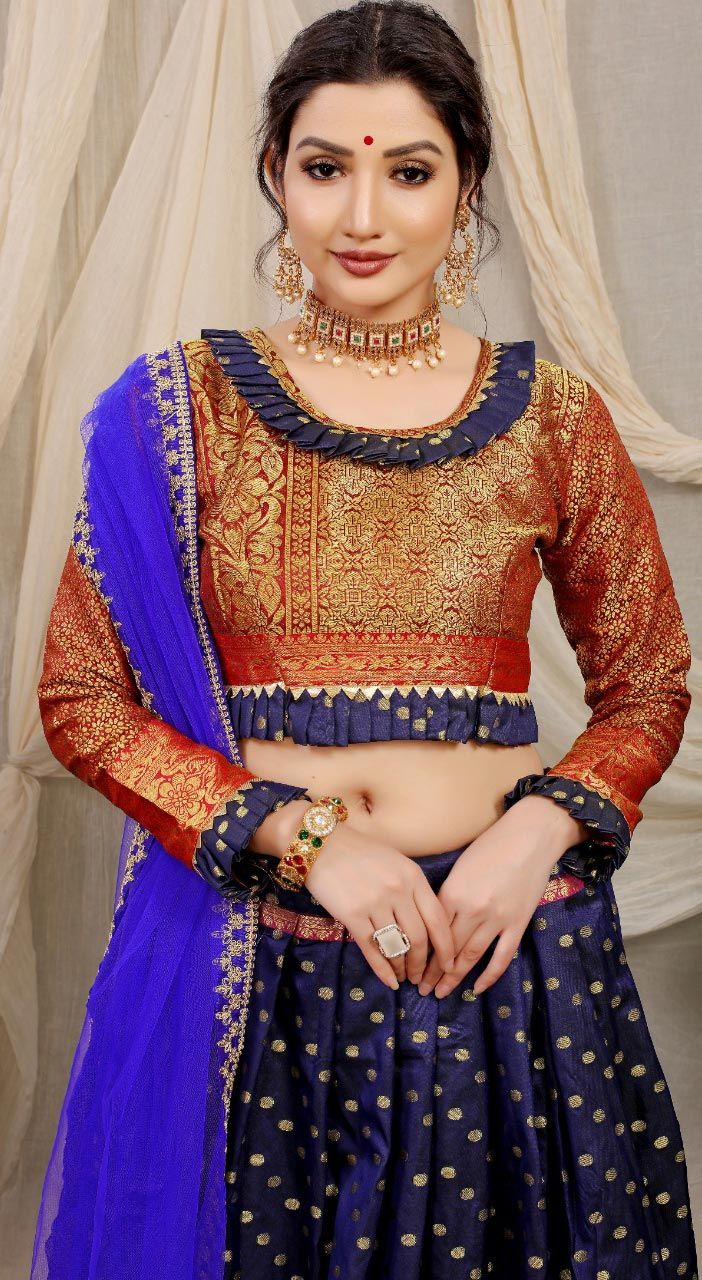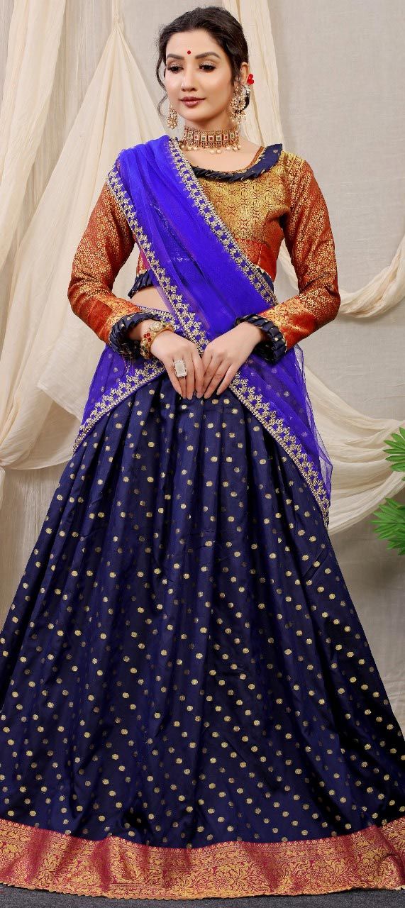 Blue color Lehenga in Silk fabric with Weaving work