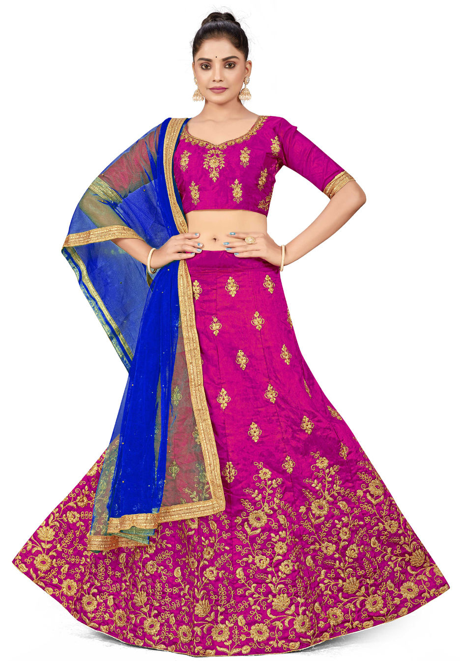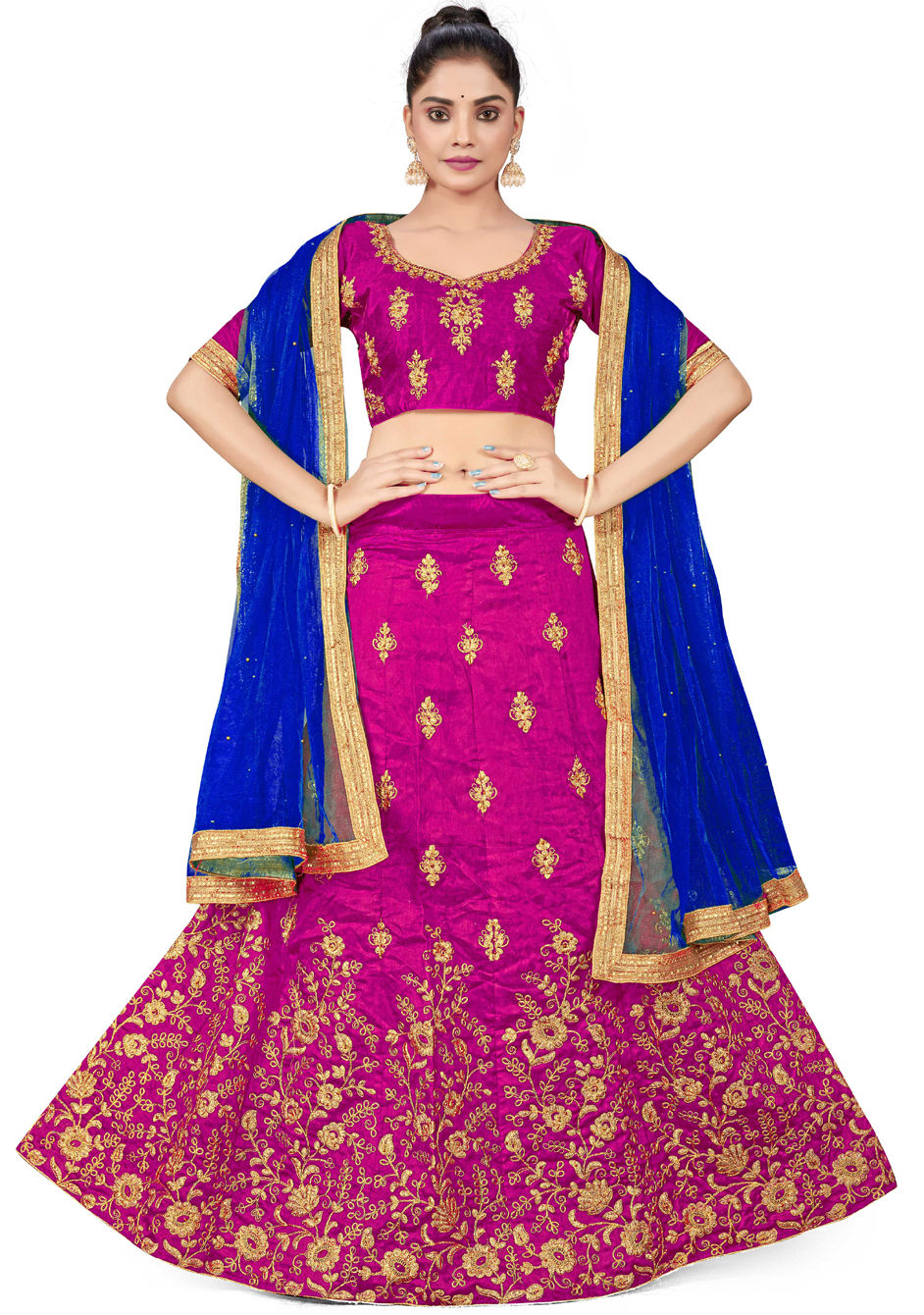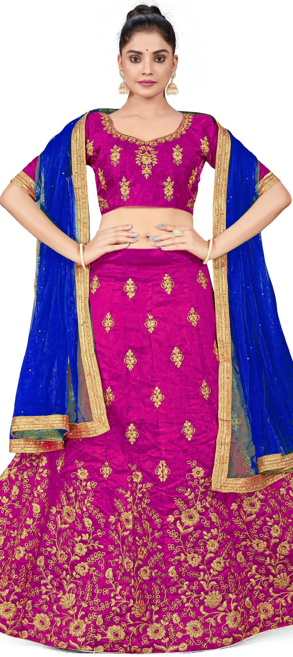 Pink and Majenta color Lehenga in Silk fabric with Embroidered, Stone, Thread, Zari work