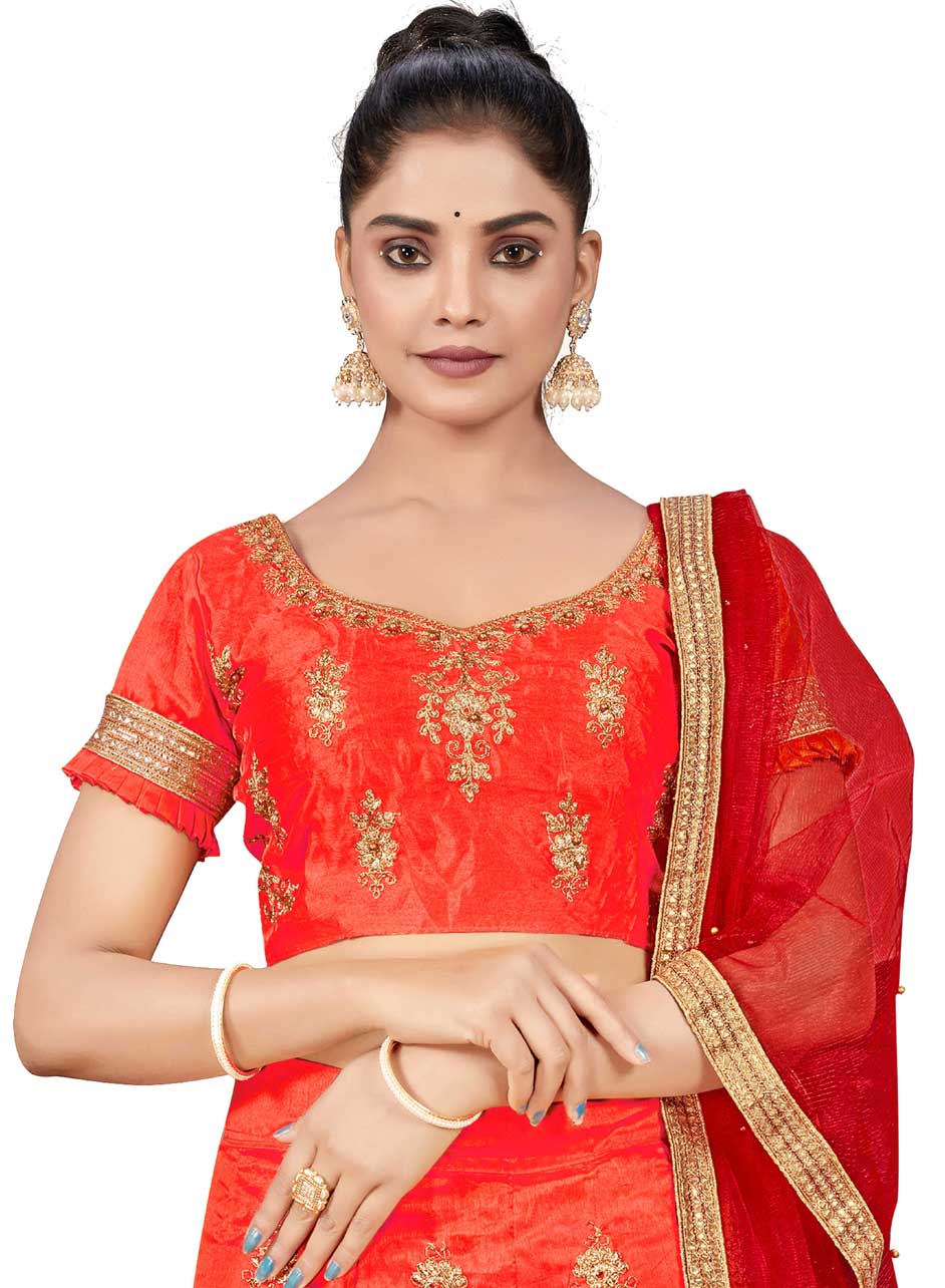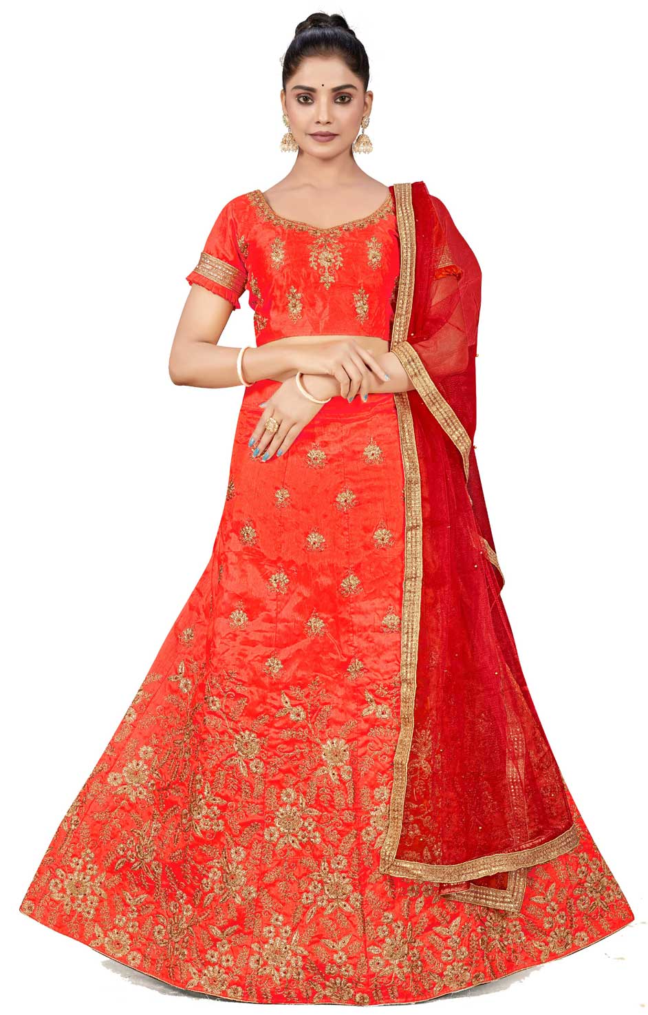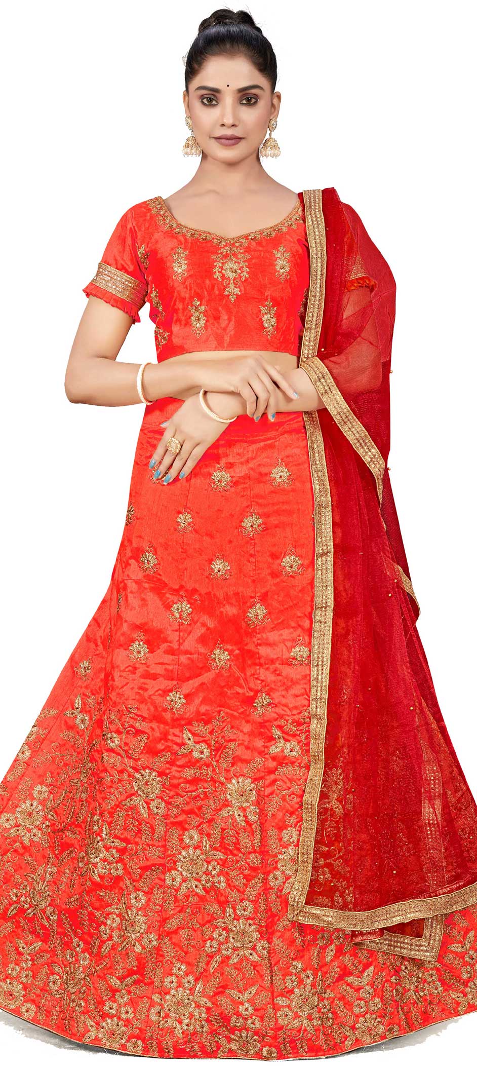 Red and Maroon color Lehenga in Silk fabric with Embroidered, Stone, Thread, Zari work