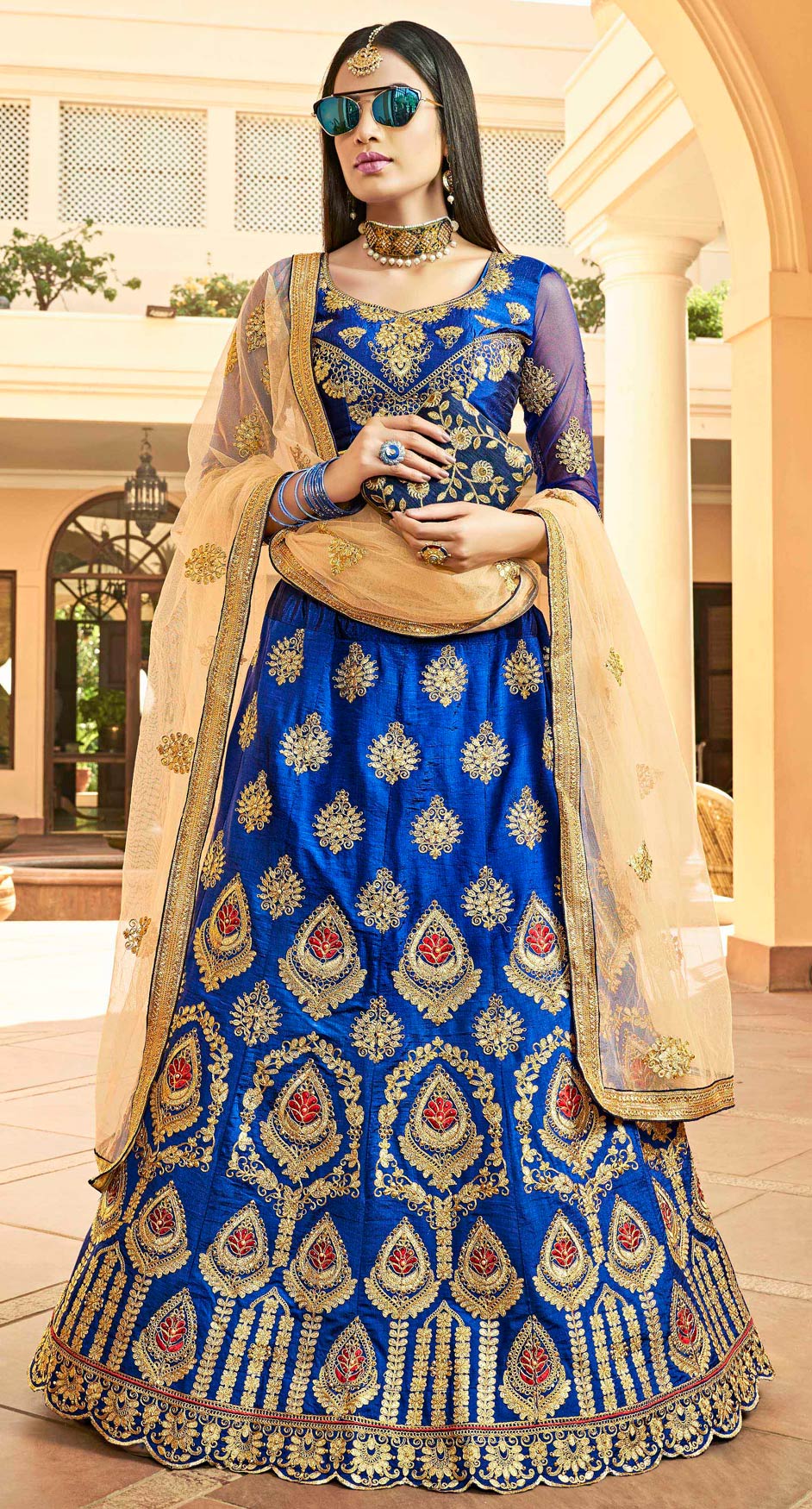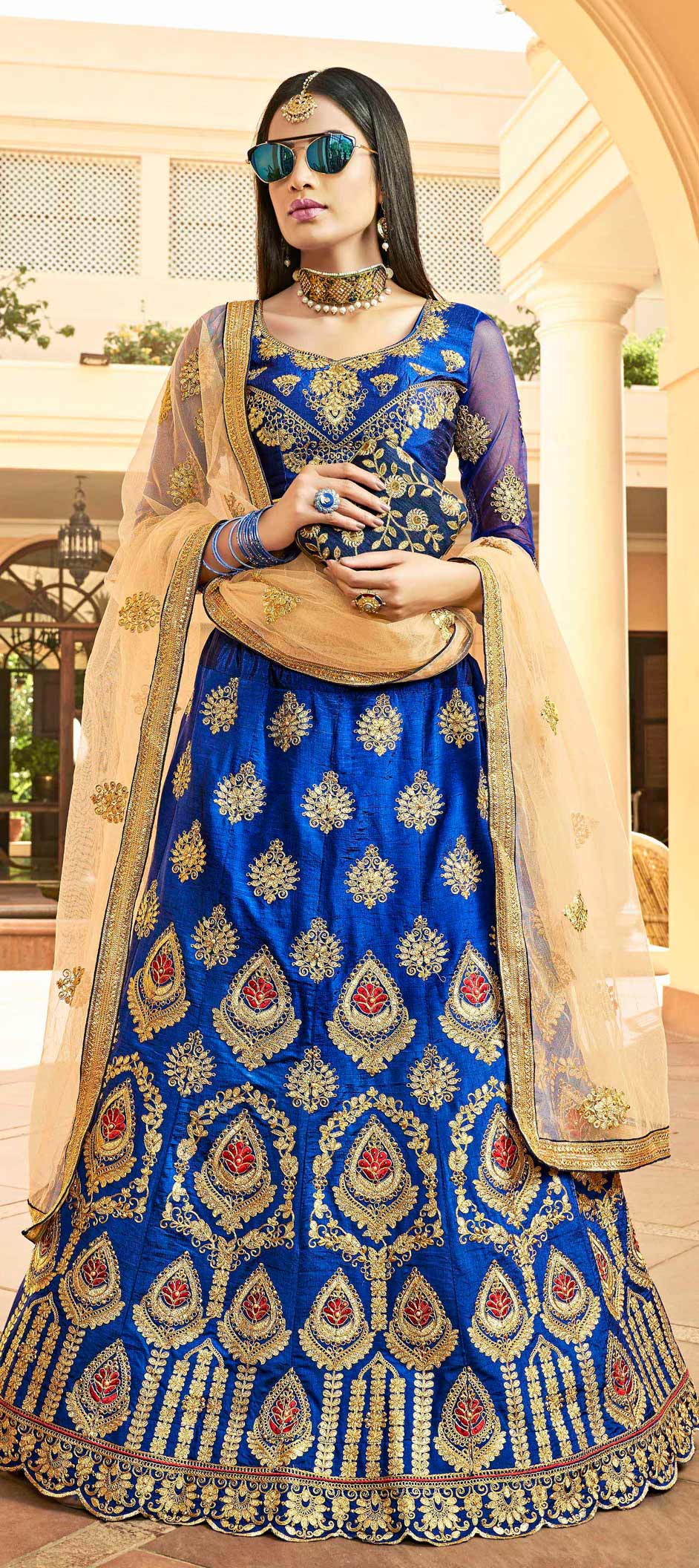 Blue color Lehenga in Silk fabric with Bugle Beads, Embroidered, Resham, Thread, Zari work