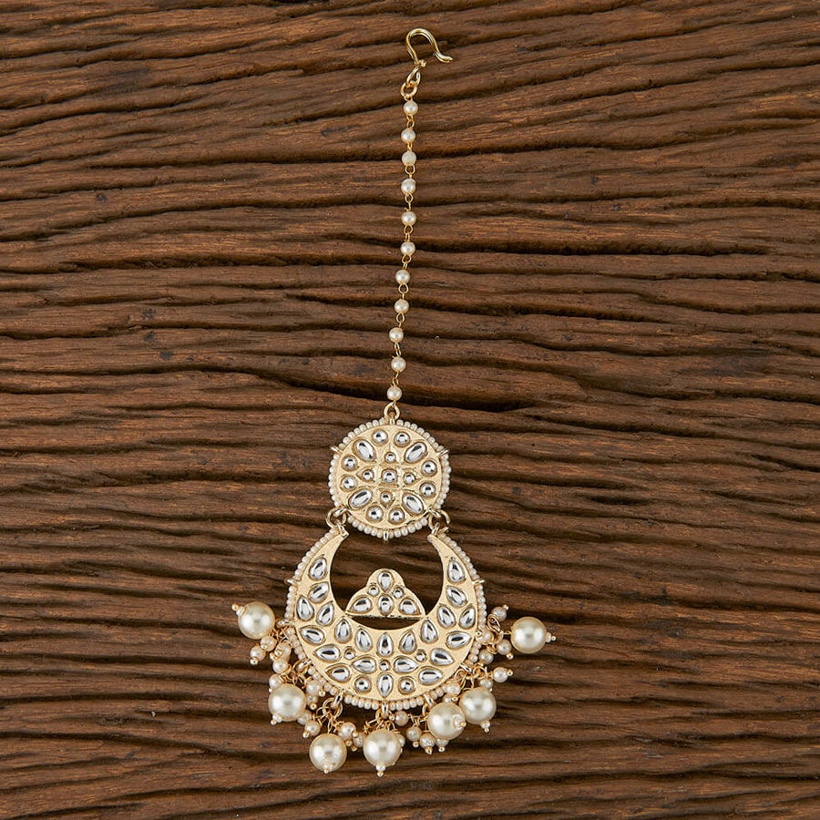 Gold Rodium Polish White and Off White color Mang Tikka in Brass studded with Kundan, Pearl