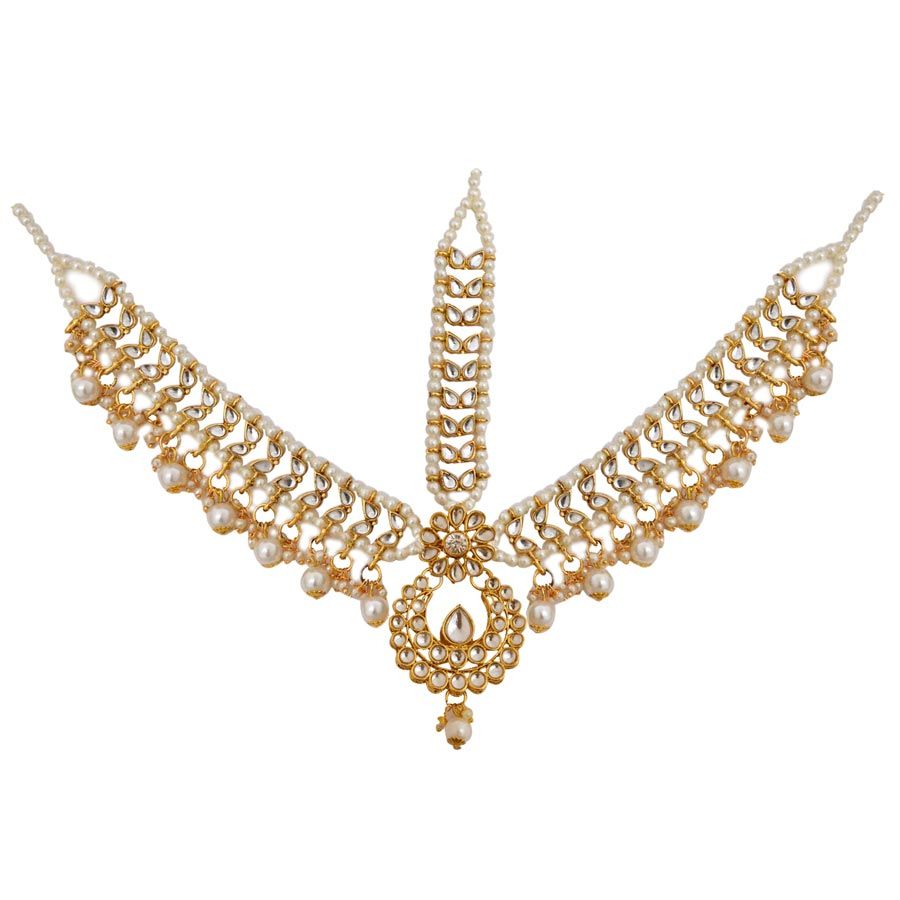 Gold Rodium Polish White and Off White Mang Tikka in Brass with Pearl