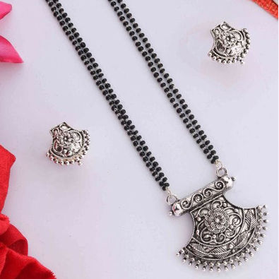 Silver Rodium Polish Silver color Mangalsutra in Metal Alloy studded with Beads