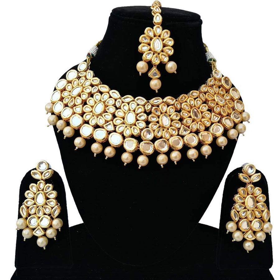 Gold Rodium Polish White and Off White Necklace in Metal Alloy with Kundan