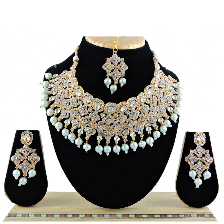 Gold Rodium Polish Gold Necklace in Metal Alloy with Austrian diamond