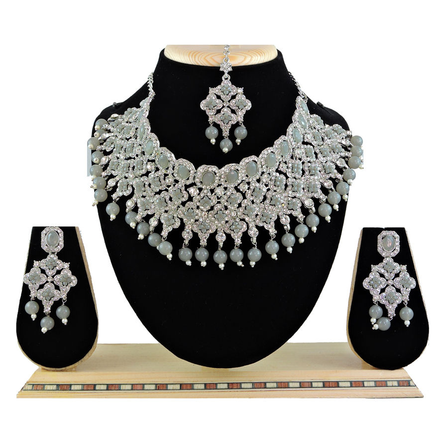 Gold Rodium Polish Black and Grey color Necklace in Metal Alloy studded with Austrian diamond, Pearl