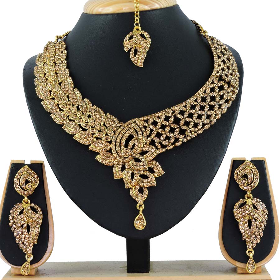Gold Rodium Polish Gold color Necklace in Copper, Metal Alloy studded with CZ Diamond