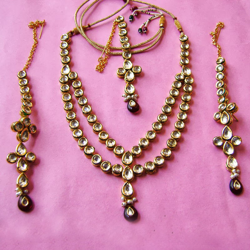 Gold Rodium Polish Gold Necklace in Metal Alloy with Kundan