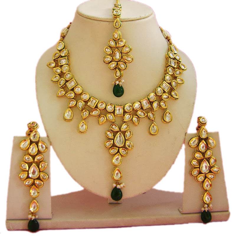 Gold Rodium Polish Gold Necklace in Metal Alloy with Kundan