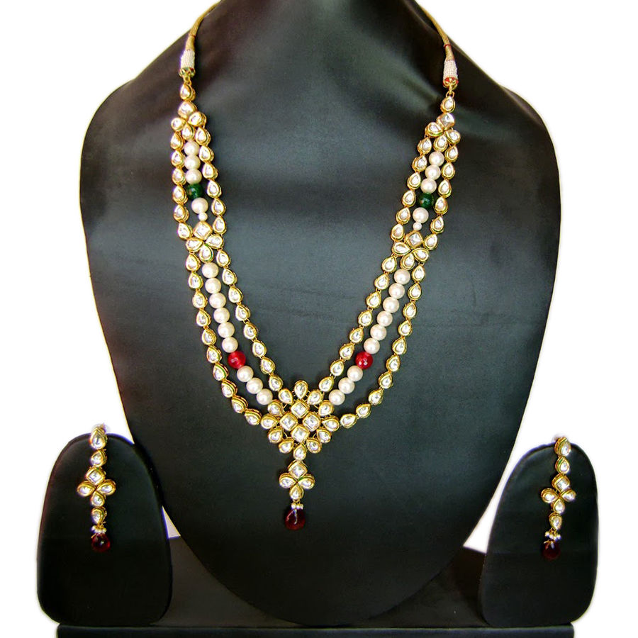 Gold Rodium Polish Gold Necklace in Metal Alloy with Kundan