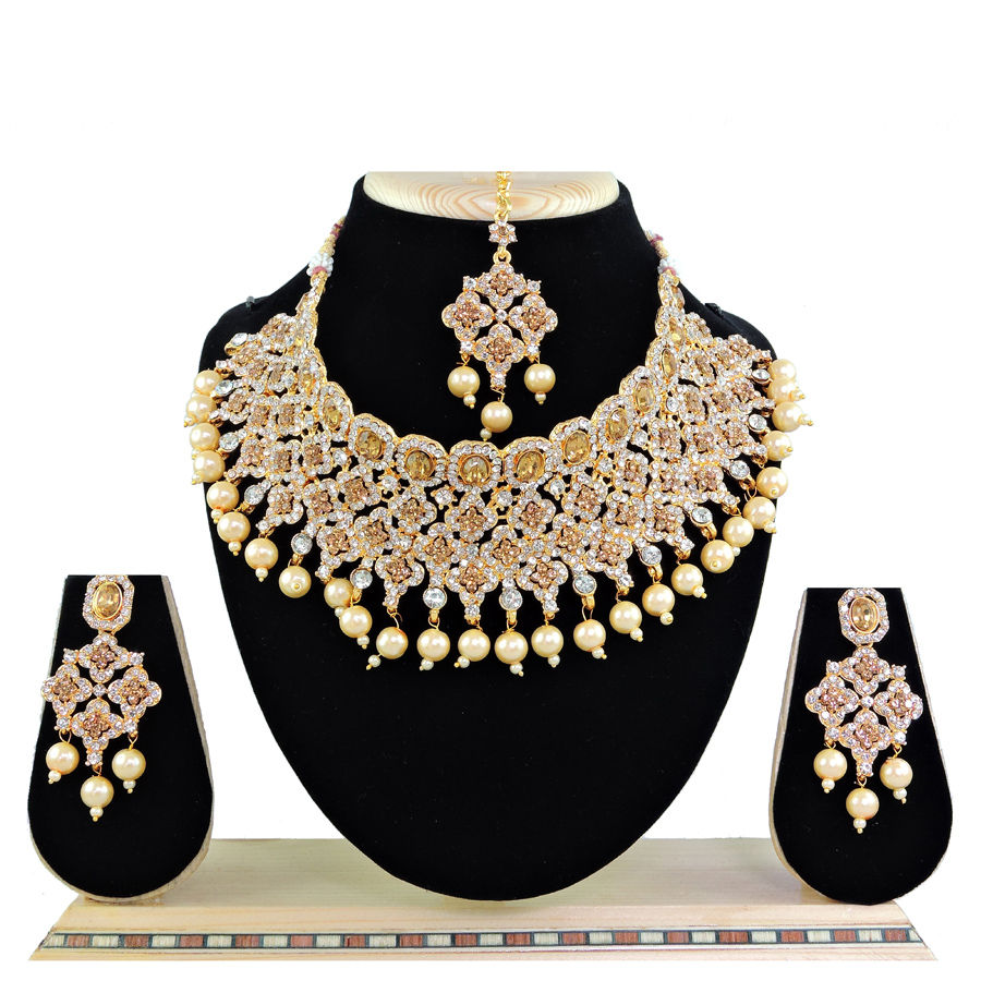 Gold Rodium Polish Gold color Necklace in Metal Alloy studded with Austrian diamond, Pearl