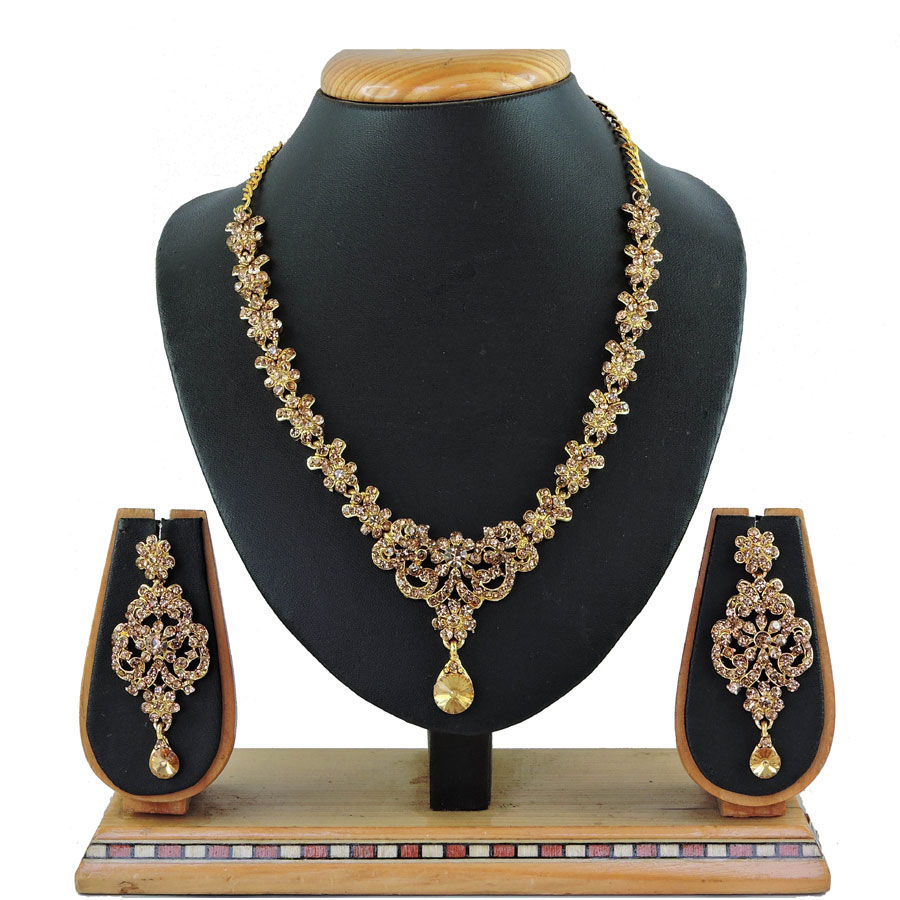 Gold Rodium Polish Gold color Necklace in Metal Alloy studded with CZ Diamond