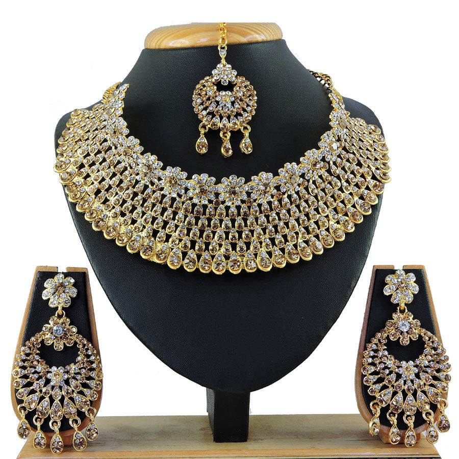 Gold Rodium Polish Gold color Necklace in Metal Alloy studded with CZ Diamond