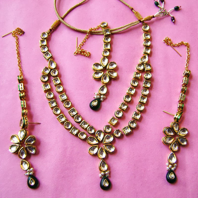 Gold Rodium Polish Gold Necklace in Metal Alloy with Kundan
