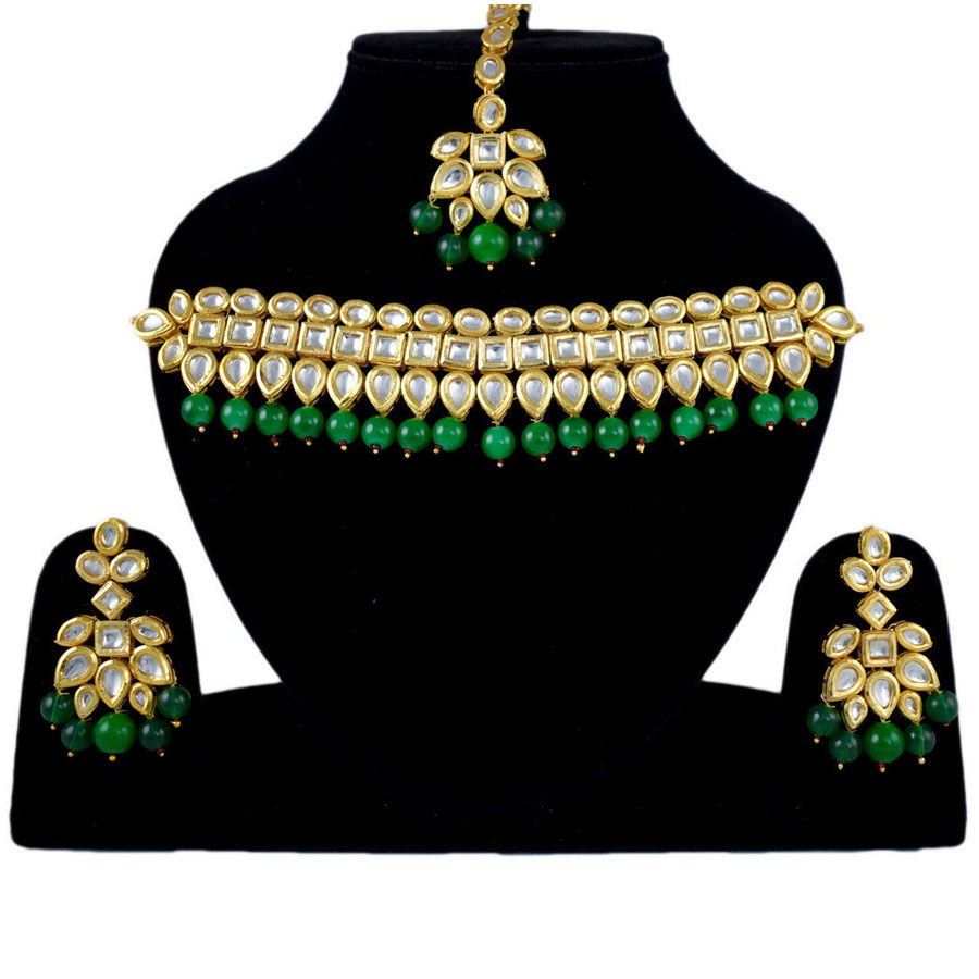 Gold Rodium PolishGreen Necklace in Metal Alloy with Kundan