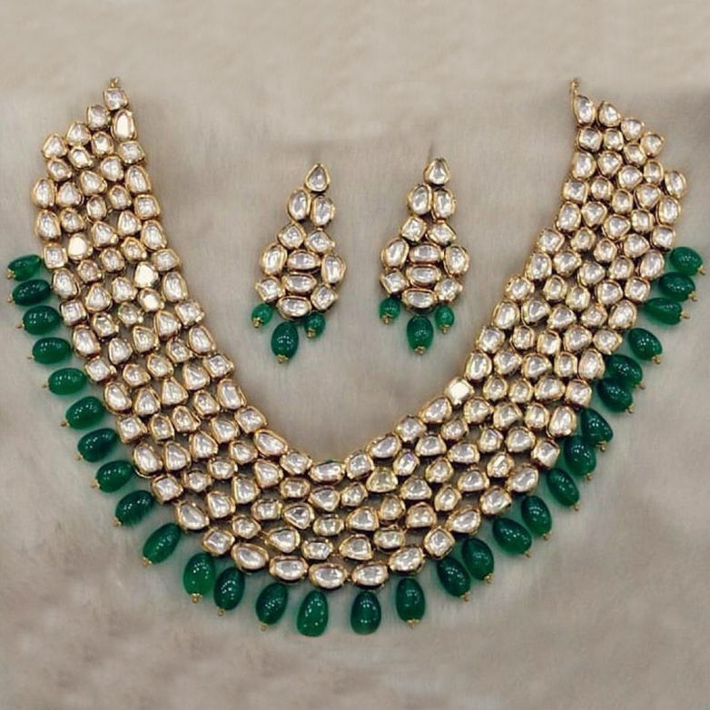Gold Rodium Polish Green color Necklace in Metal Alloy studded with Kundan