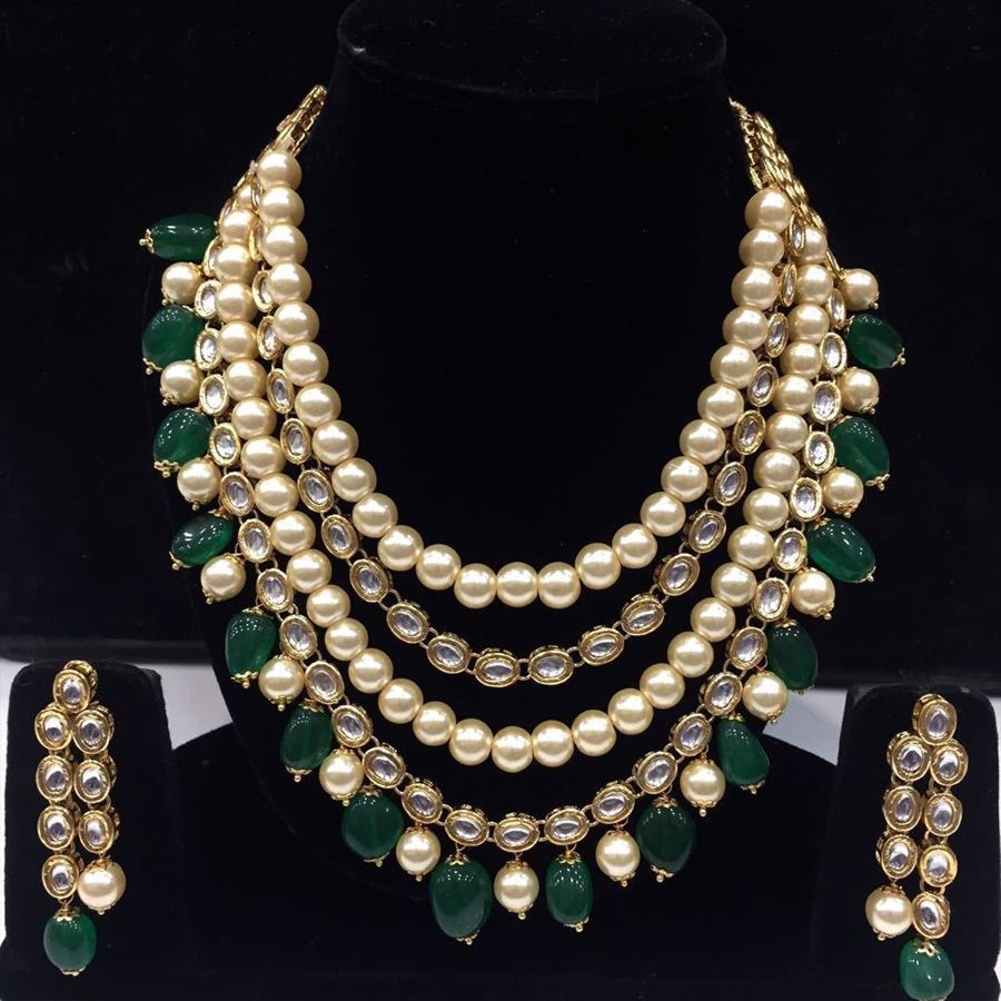 Gold Rodium Polish Green Necklace in Metal Alloy with Kundan