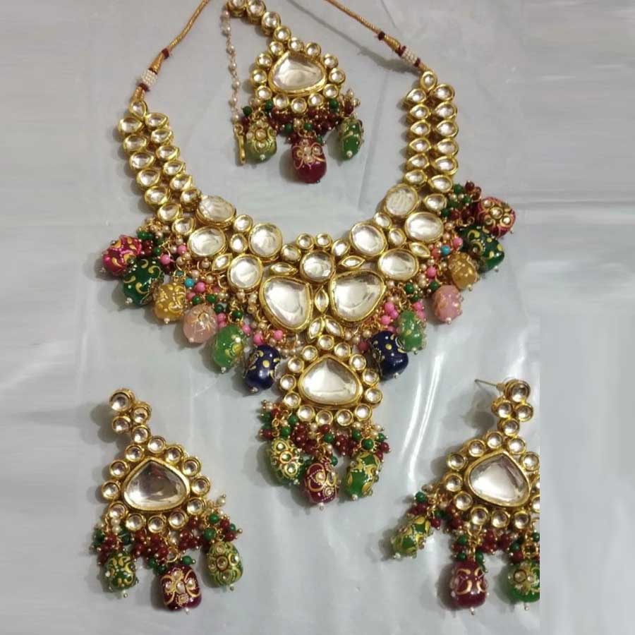 Gold Rodium Polish Multicolor color Necklace in Metal Alloy studded with Kundan, Pearl