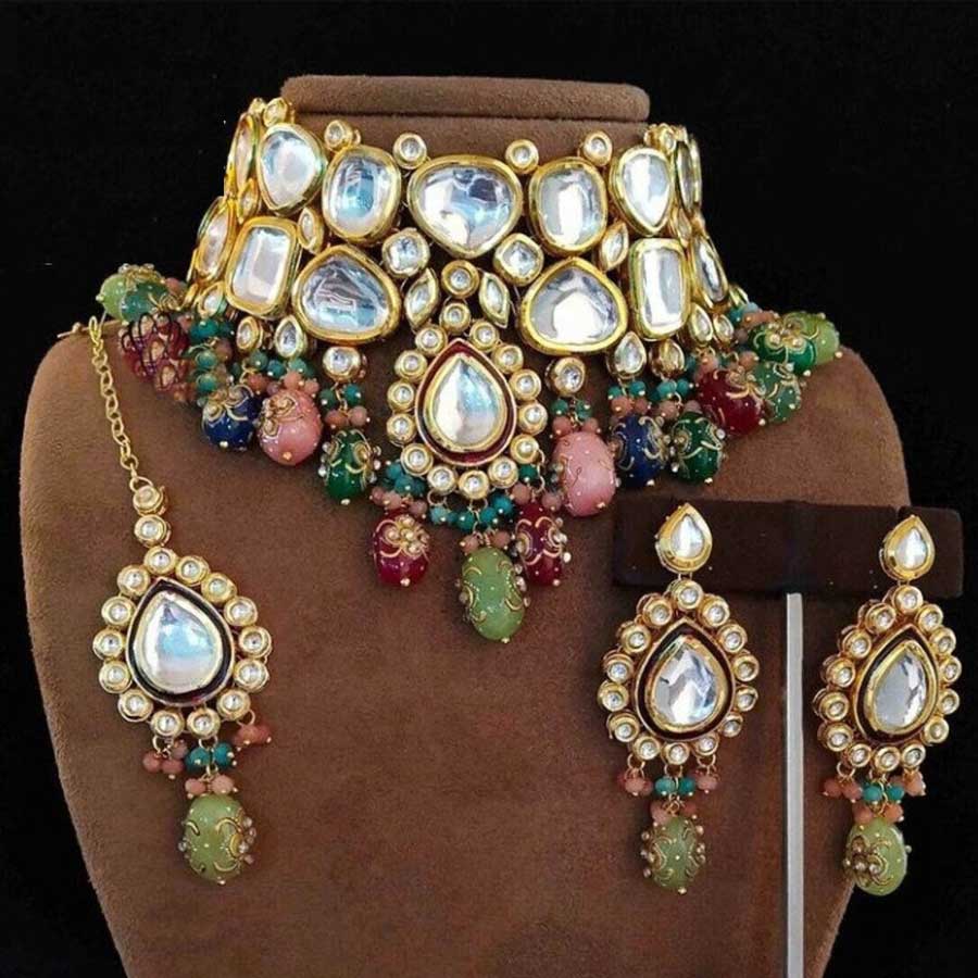 Gold Rodium Polish Multicolor color Necklace in Metal Alloy studded with Kundan, Pearl