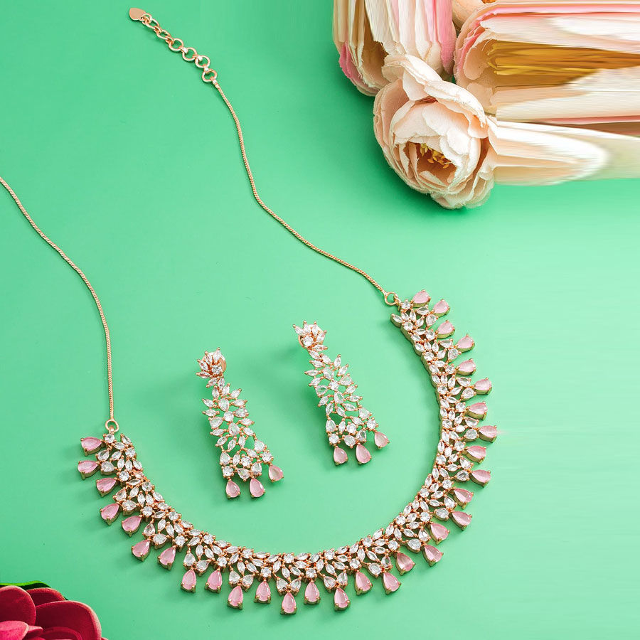 Gold Rodium Polish Pink and Majenta color Necklace in Metal Alloy studded with Austrian diamond, Kundan