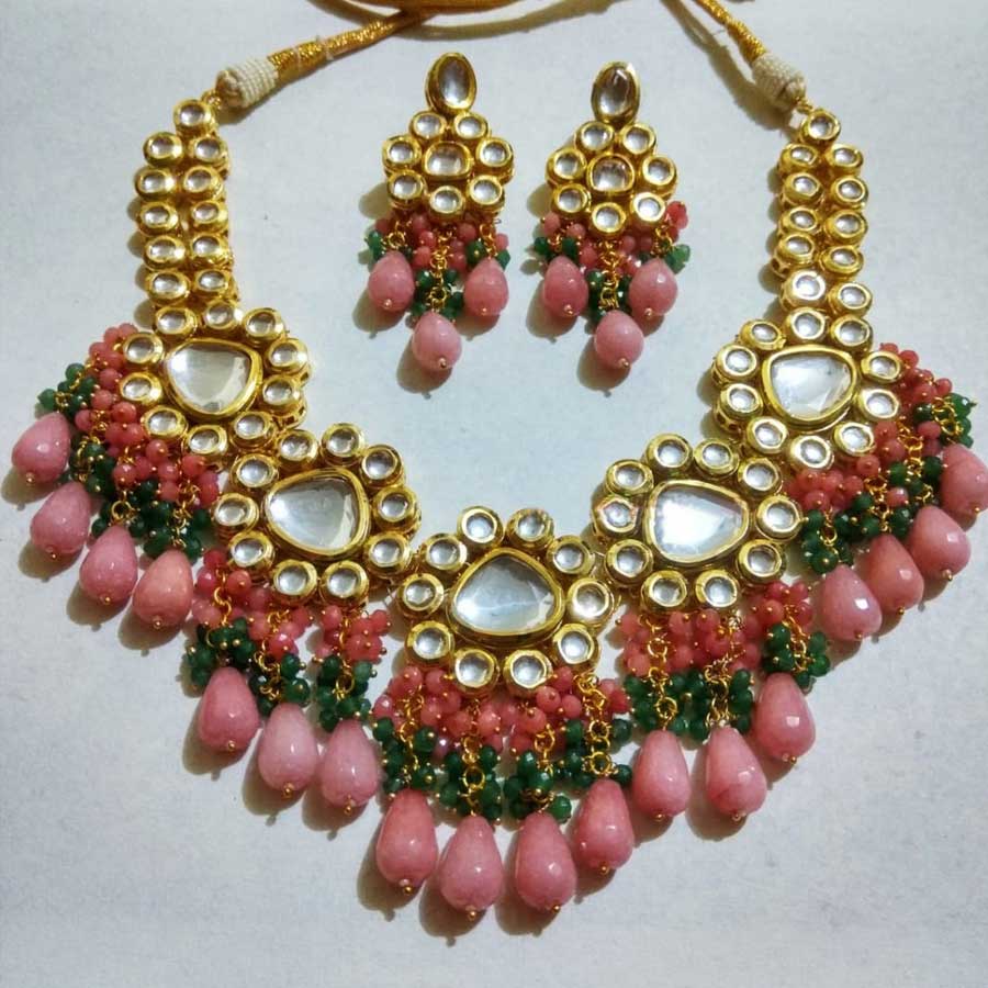 Gold Rodium Polish Pink and Majenta Necklace in Metal Alloy with Kundan