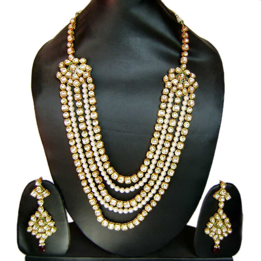 Gold Rodium Polish Gold Necklace in Metal Alloy with Kundan